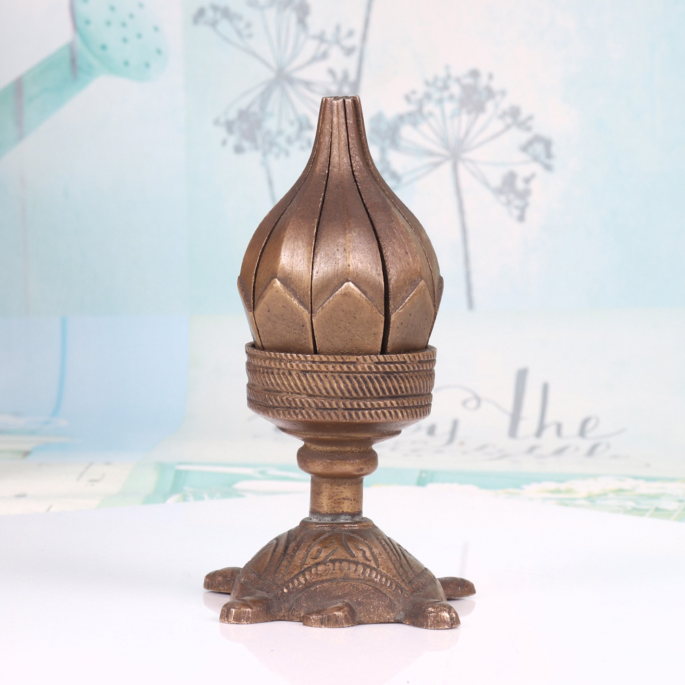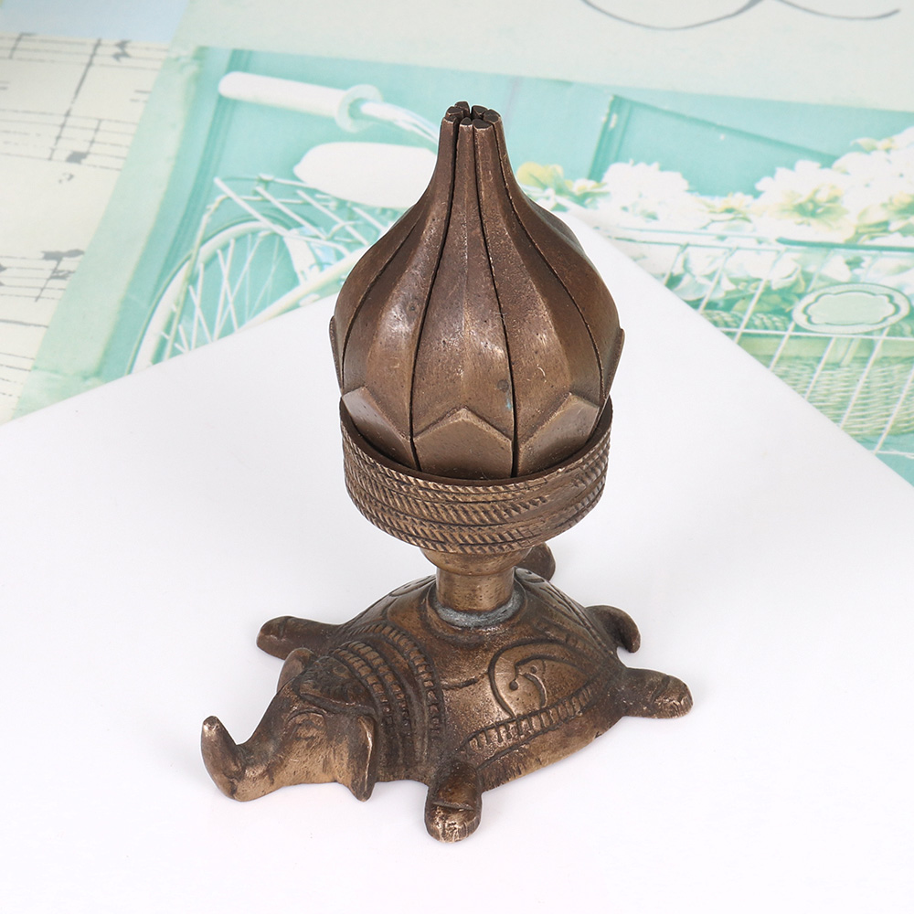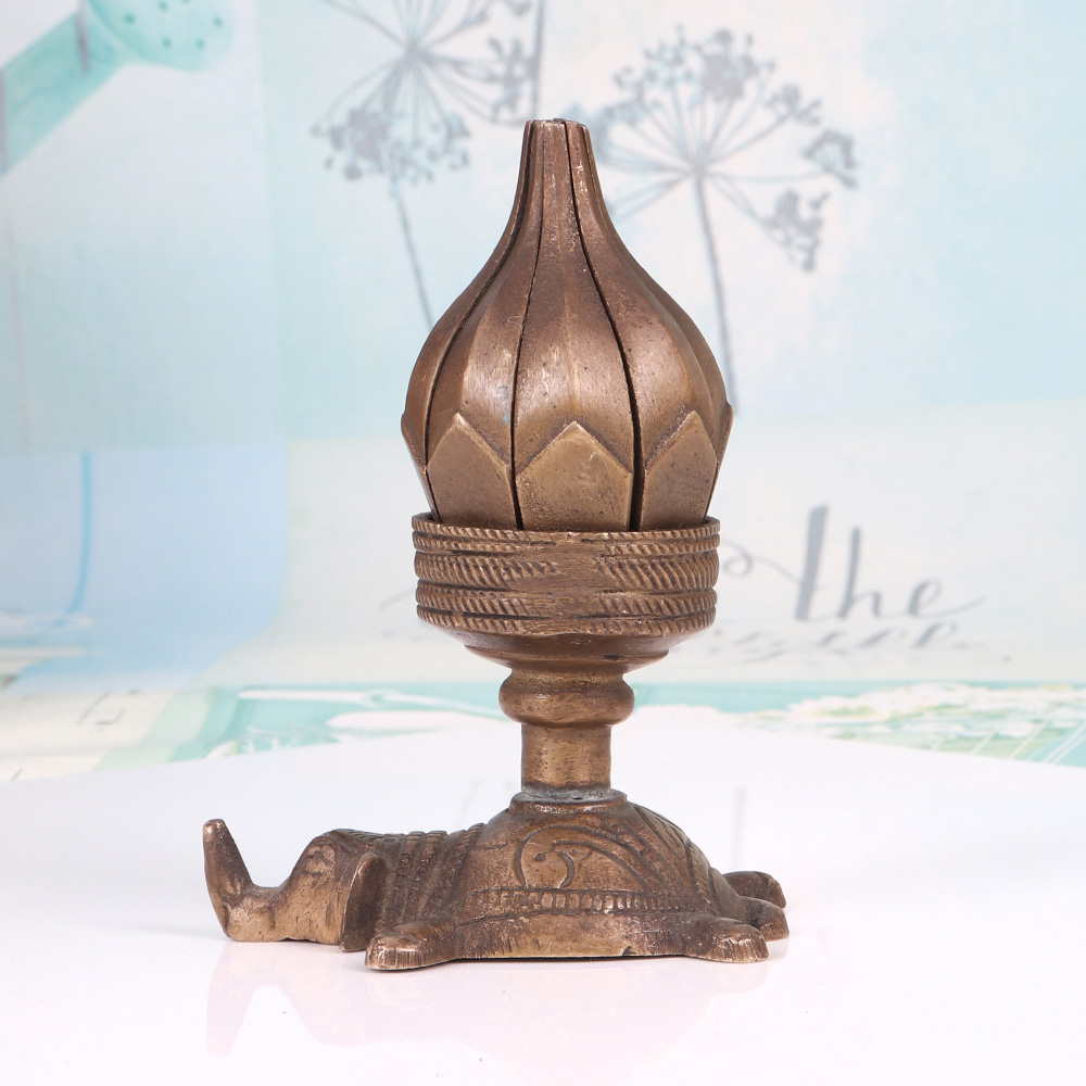 Bring the enchanting beauty of the Far East into your home with the Brass Lotus Candle Stand. This exquisite piece, crafted with meticulous attention to detail, features a captivating lotus design that will elevate the ambiance of any space and transport you to a realm of serenity and tranquility. The Brass Lotus Candle Stand is more than just a functional home accessory - it's a work of art that will captivate and soothe the senses. The lotus, a symbol of spiritual awakening and inner peace, is beautifully rendered in gleaming brass, creating a mesmerizing visual centerpiece that will draw the eye and infuse your space with a sense of calm. Whether you're looking to create a serene meditation corner, add a touch of zen-like elegance to your living room, or surprise a loved one with a thoughtful gift, this candle stand is the perfect choice. The elephant base provides a sturdy, decorative foundation that complements the lotus design, creating a harmonious blend of Eastern-inspired motifs. Light a tea light candle and watch as the flickering flame casts a warm, soothing glow, transforming your space into a tranquil oasis.