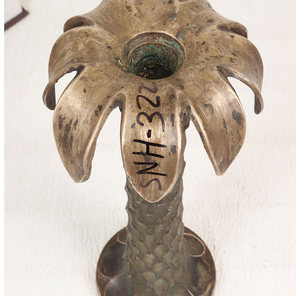 Adorn your living room with the timeless charm of our Vintage Brass Candle Stand that is crafted in the shape of a majestic palm tree. This exquisite piece boasts an antique brown finish, adding a touch of old-world elegance to any space. Meticulously handmade by talented artisans in the revered English Art tradition, this candle stand is a testament to craftsmanship and quality. Made from high-quality brass, the stand exudes durability and sophistication. Its versatile design allows it to be hung in various settings, whether at home, office, restaurant, hotel, or cafe, enhancing the ambiance with its warm, nostalgic glow. This piece is not merely a decor item but a collector's delight, seamlessly blending into vintage collections. Celebrate special, festive, or auspicious occasions by gifting this unique candle stand to your loved ones, symbolizing timeless beauty and craftsmanship.