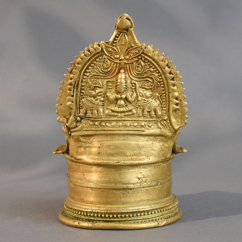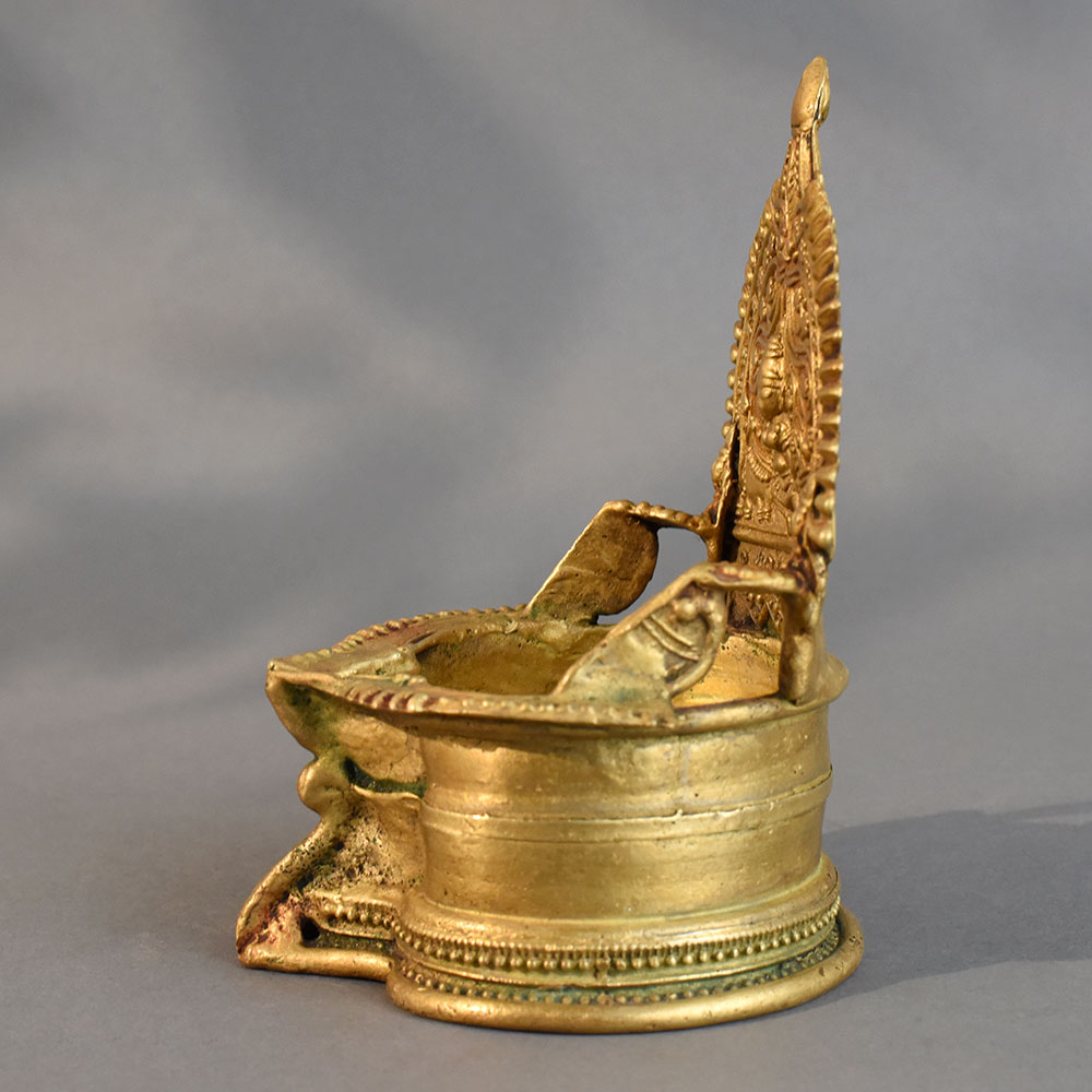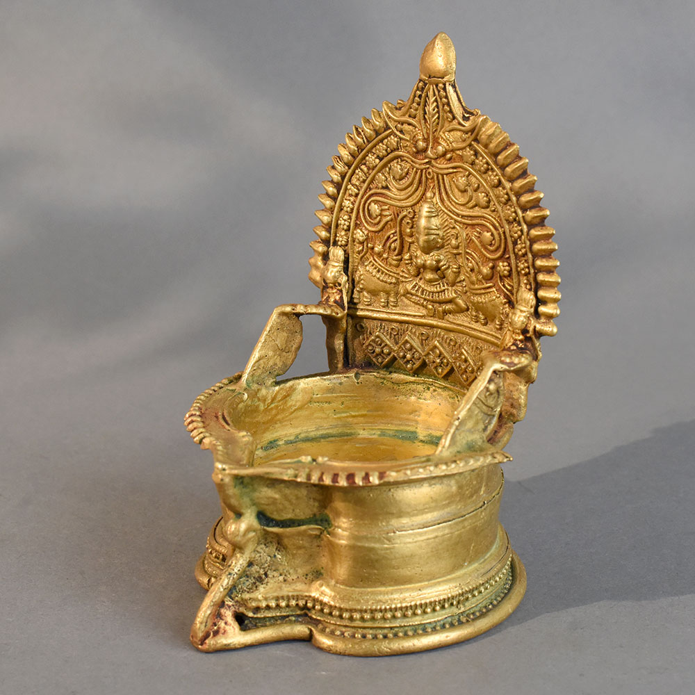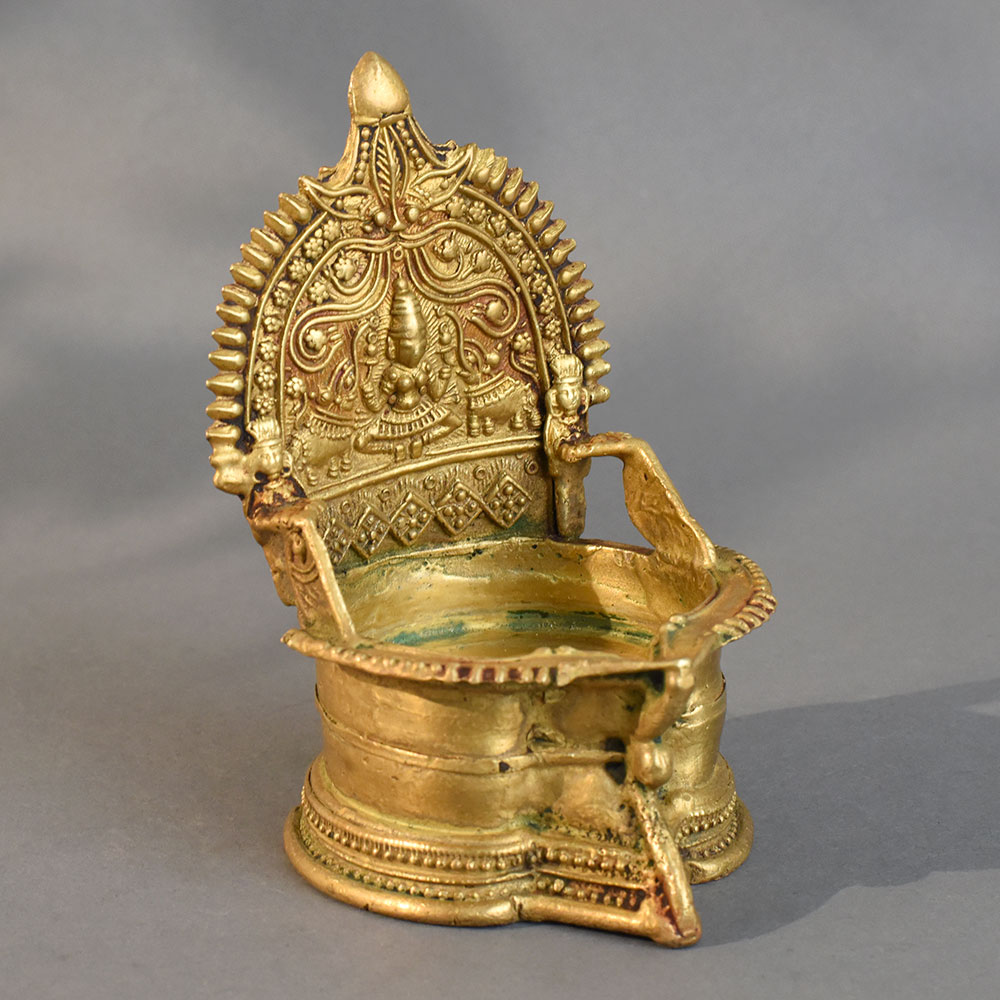 - Handmade brass diya with intricate South Indian temple-inspired design