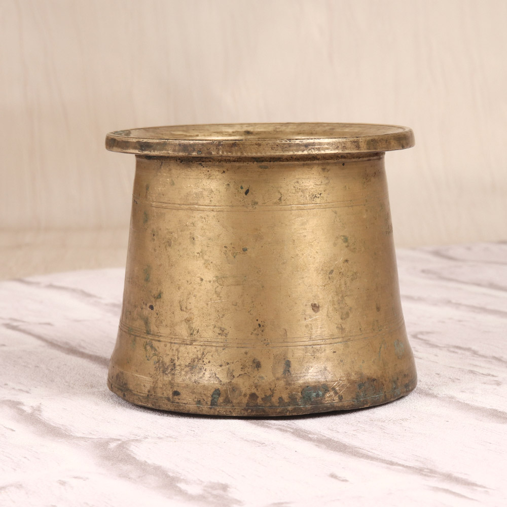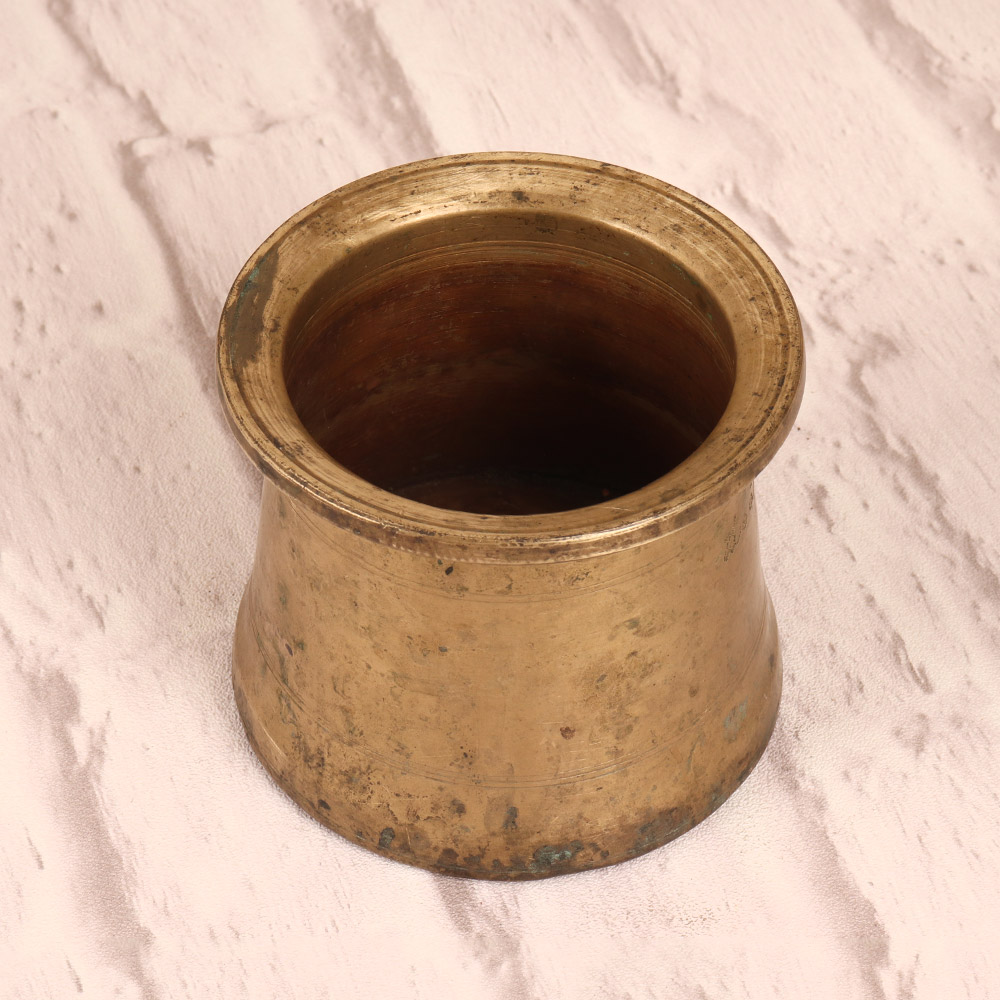 Discover the beauty and significance of the traditional South Indian panchpatra with this exquisite vintage brass pot. Meticulously crafted to honor the five elements, this captivating vessel is the perfect addition to your home altar or sacred space. Infuse your spiritual practice with the timeless allure of this panchpatra. Its five compartments symbolize the five elements - earth, water, fire, air, and ether - allowing you to make offerings to the divine with intention and reverence. Whether you're a seasoned practitioner or new to the world of Hindu rituals, this versatile pot will elevate your connection to the sacred. Elevate your home altar or meditation space with this stunning brass panchpatra. Its classic design and sturdy construction make it a timeless piece that will last for generations. Embrace the rich heritage of South Indian art and let this beautiful vessel guide you on your spiritual journey.