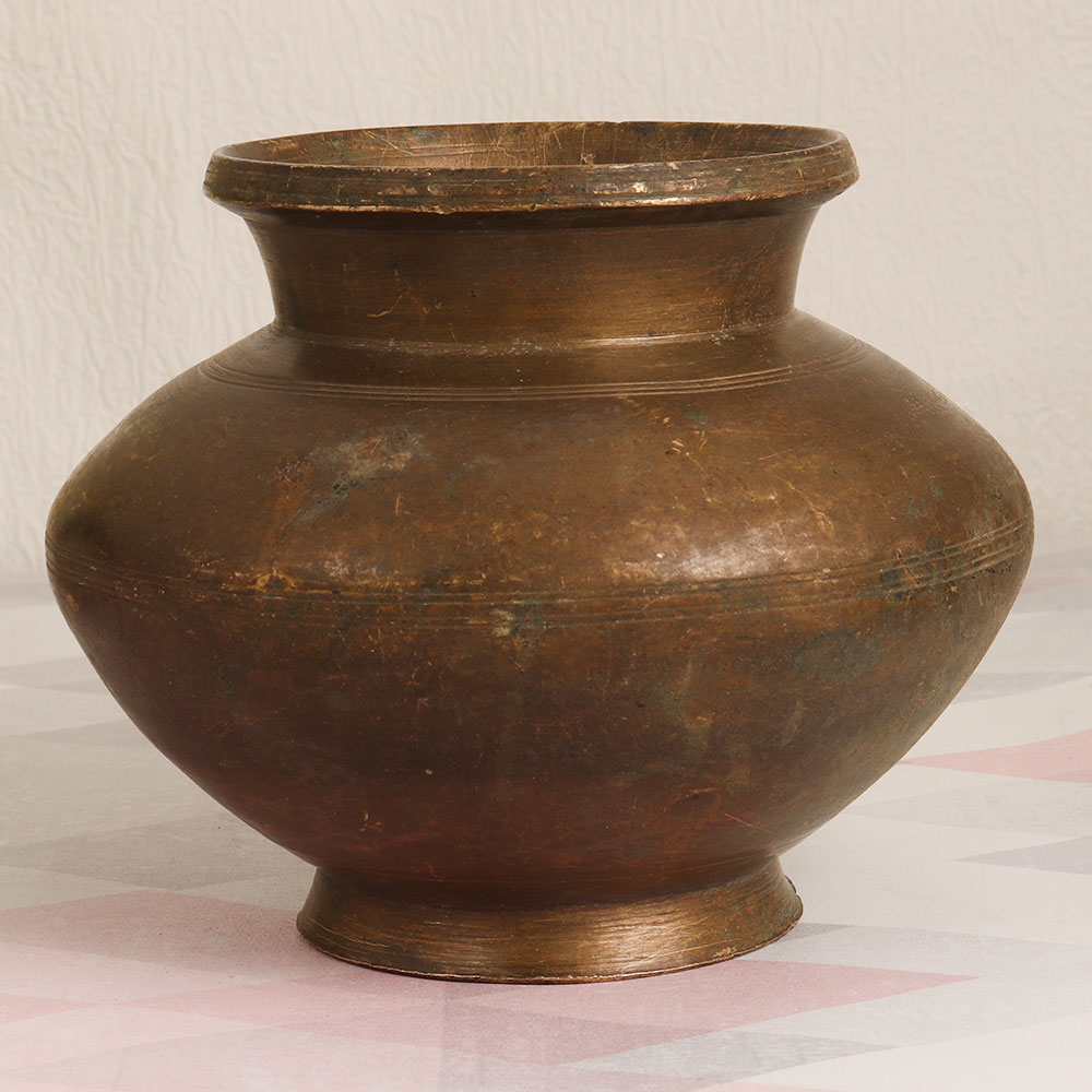 Buy a vintage brass holy water pot online that is exquisitely crafted in an antique brown finish by highly talented Indian craftsmen, steeped in the heritage of South Indian artistry. Made from high-quality brass, this piece bears the mark of meticulous craftsmanship and heritage that will leave your guests in awe. This versatile artefact can be seamlessly integrated into a variety of settings, be it at home, office, restaurant, hotel, cafe, or shop. Beyond its ornamental beauty, it serves a sacred purpose. Perfect for havans, rituals, and auspicious occasions, this pot gracefully holds holy water, enhancing the spiritual atmosphere of any gathering. Placing it in the north direction of your room is believed to radiate positive energy, fostering a sense of tranquillity and well-being. Additionally, it can serve as a unique indoor flower pot, breathing life into your space. As a collector's item, it is a rare find, and it can be an ideal gift for your family, friends or relatives on special, festive, or auspicious occasions.