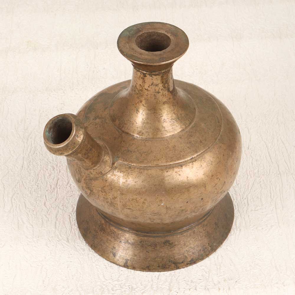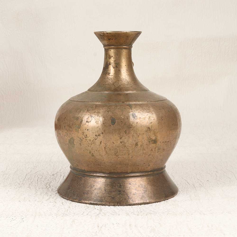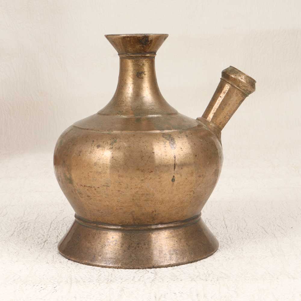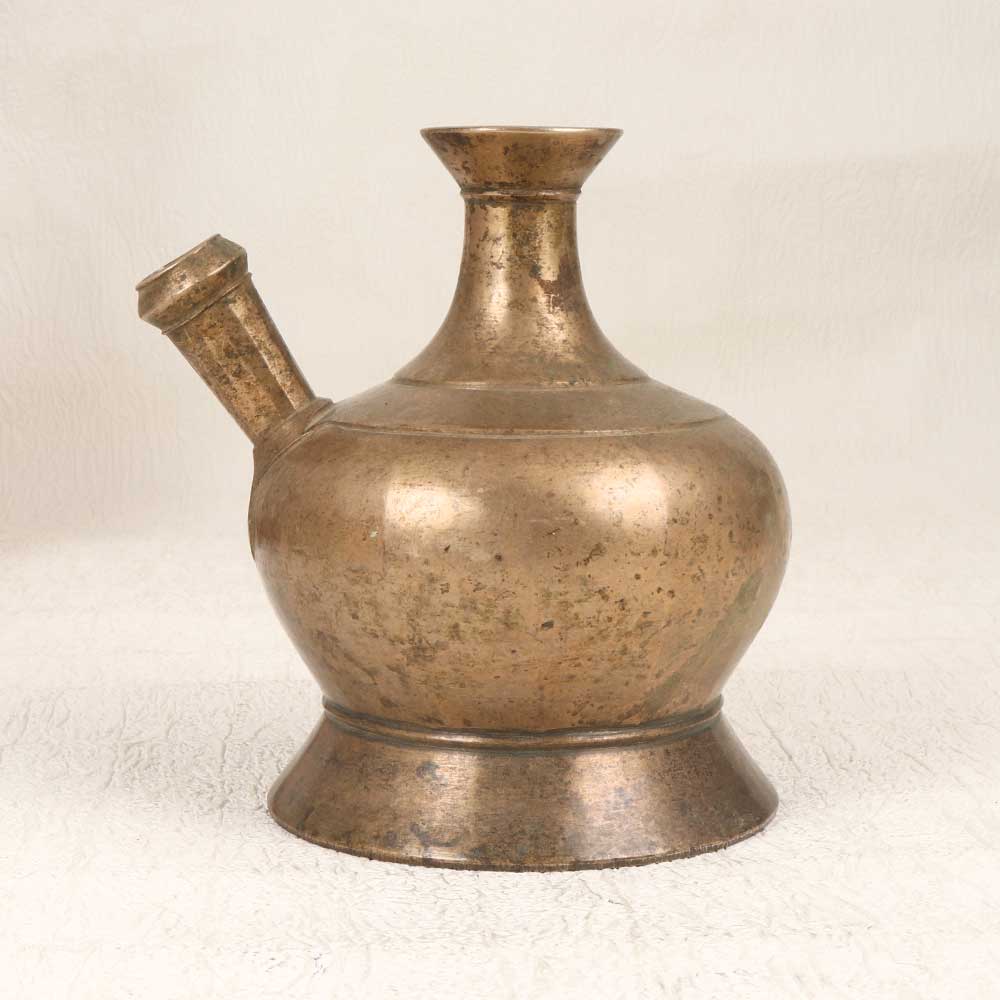 Make an eye-catching statement with this one-of-a-kind brass hookah vase featuring vintage Indian designs. Intricate patterns dance across the surface of the brass, elevating any floral arrangement into a work of art. This hookah vase boasts a small opening, perfect for creating voluminous bouquets of peonies, roses, wildflowers, and any other bloom you desire. The gorgeous etched metalwork steals the show while complementing the soft petals. Display it on your entryway console, dining table, or mantle for an exotic touch. Expertly handcrafted, this brass vase combines both form and function. Use it as an empty decorative accent to add a global, bohemian vibe to any space. The antique patina finish provides an air of exotic authenticity. With its artistic designs and multifunctional possibilities, this hookah vase makes a fantastic gift for any worldly, free-spirited person in your life. Surprise flower lovers, hosts, interior design mavens, and world travelers with this vintage handcrafted piece. Let the artwork of the vase itself shine, with or without a bouquet.