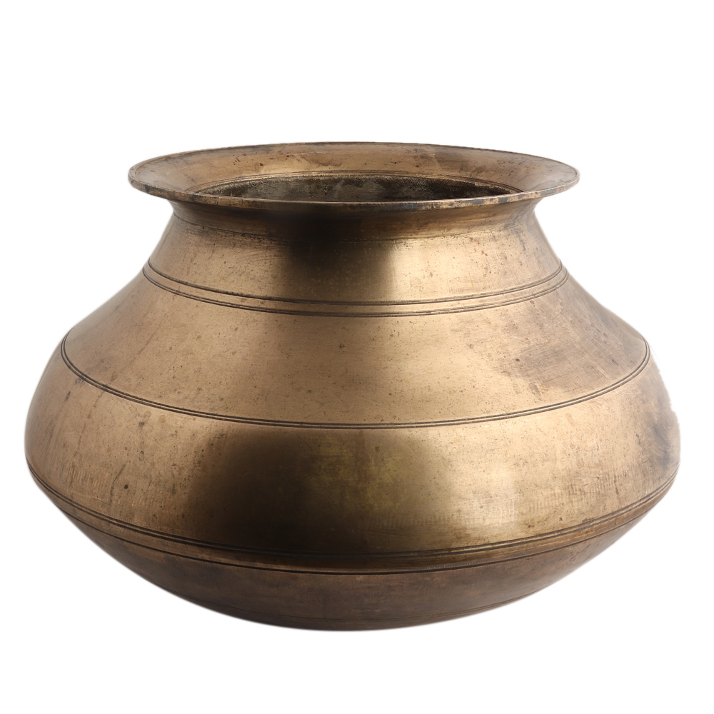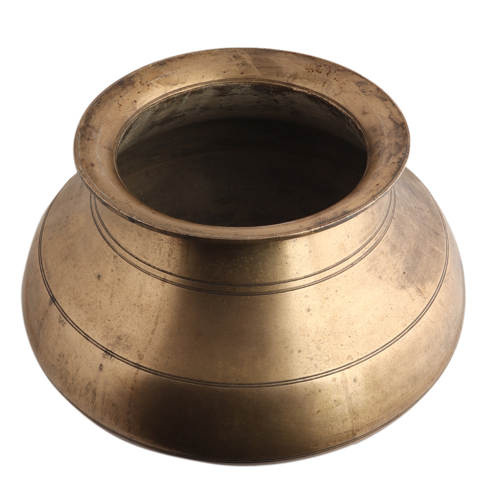 The beautiful Vintage pot for cooking from Assam brings authentic kitchen decor. You can use this to enhance your living room spaces or place these on tables to make a lasting impact. The special quality brass Vintage pot for cooking from Assam features a thick rim and a delicate detailing. It was traditionally used to make rice due to its thick bottom.