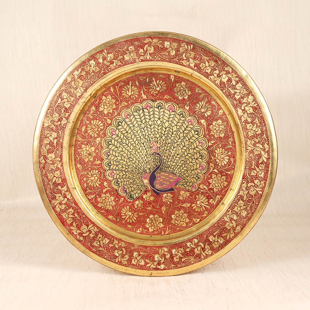 Elevate your décor with the captivating allure of our Vintage Brass Round Hanging Plate. This exquisite piece is a true work of art, showcasing the timeless beauty of brass craftsmanship and the enchanting elegance of a peacock design. Escape the ordinary and surround yourself with the enchantment of nature. The captivating peacock design, expertly engraved and enameled, will command attention and spark conversation. Whether you choose to hang it on the wall or place it on a tabletop, this vintage-inspired plate will infuse your space with a touch of timeless charm and elegance. Ideal for those who appreciate fine craftsmanship and the beauty of nature-inspired design, the Vintage Brass Round Hanging Plate is a must-have for the discerning home décor enthusiast. Upgrade your living space with this heirloom-quality piece that will be admired for years to come and become a cherished part of your home's story.