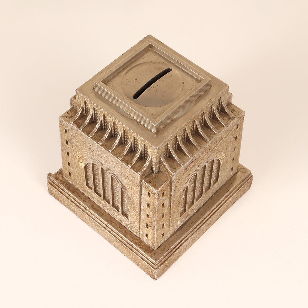 Bring a touch of old-world elegance to your spare change storage with this exquisite vintage metal money bank. Crafted with premium materials and a timeless, eye-catching design, this bank transforms the mundane task of saving into a delightful, decorative experience. This vintage metal money bank isn't just an ordinary coin canister - it's a beautiful, functional piece that adds a sense of vintage charm and sophistication to your space. With its gleaming metallic finish and classic, retro-inspired silhouette, this bank elevates the humble act of saving change into a stylish, decorative accent that you'll be proud to display. Whether placed on your dresser, office desk, or living room shelf, this vintage bank catches the eye and sparks a sense of nostalgia. Its timeless design harks back to the coin jars and savings canisters of yesteryear, evoking feelings of childhood wonder and the simple pleasures of watching your spare change grow. Use it to teach your kids about financial responsibility, or keep it for yourself as a visually appealing way to build up your rainy-day fund. Crafted with meticulous attention to detail, this sturdy metal bank is built to withstand daily use and provide years of reliable service. Elevate your spare change storage and add a touch of vintage elegance to your home with this exquisite metal money bank.
