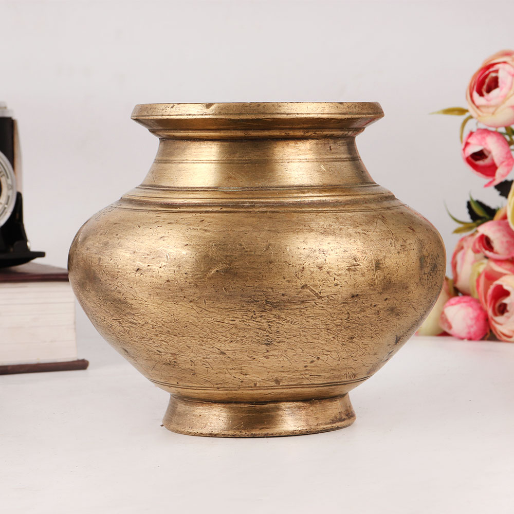 Buy a vintage holy water pot online which is a true masterpiece of craftsmanship and tradition. Handmade by highly skilled and experienced Indian artisans using time-honored methods, this Lota showcases a stunning antique brown finish that adds a touch of elegance to any space. Crafted from premium quality brass, this holy water pot serves as both a decorative piece and a functional item for various religious ceremonies. It finds its significance during havans, Hindu rituals, and auspicious functions, serving as a vessel to store sacred water. Additionally, it is commonly used in temples to offer water to the Shivling, absorbing negativity from the surroundings and radiating positive energy. Furthermore, this sacred pot plays a vital role in maintaining balance between spirit and mind, as it is used to offer water to the sun god. When placed in the north or east direction of a house, it is believed to spread positive energy throughout the space. Whether as a personal possession or a thoughtful gift, this Brass Holy Water Pot embodies spiritual significance, cultural heritage, and timeless beauty, making it an ideal choice for special, festive, or auspicious occasions.