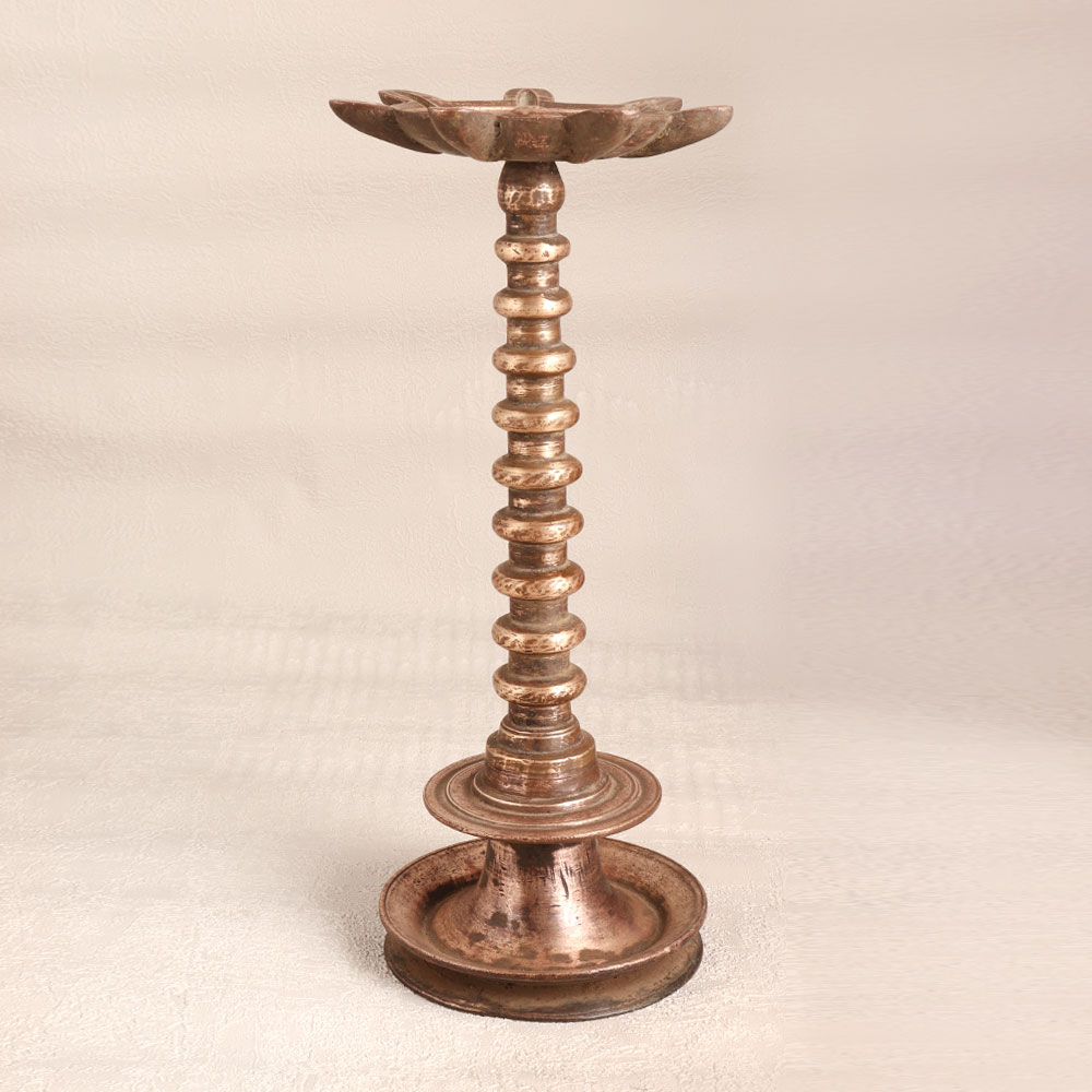 Enhance the ambiance of your space with this Vintage Brass Oil Lamp featuring seven jyots that is a true embodiment of Indian heritage and craftsmanship. Handmade by skilled artisans in India, this lamp exudes elegance with its antique brown finish, exquisitely designed to add a touch of vintage charm to any setting. This versatile lamp can be filled with either mustard oil or ghee, with cotton wicks that produce a warm and inviting glow. Its timeless design allows it to grace a variety of spaces, including your home, office, hotel, cafe, shop, or restaurant prayer room. It serves as both a decorative piece and a functional item, making it a valuable addition to your vintage collection or an attractive exhibit at events or exhibitions. Perfect for religious ceremonies or auspicious occasions, this lamp radiates an aura of serenity and spirituality. Moreover, it's an ideal gift for your family, friends or relatives on special, festive, or auspicious occasions.