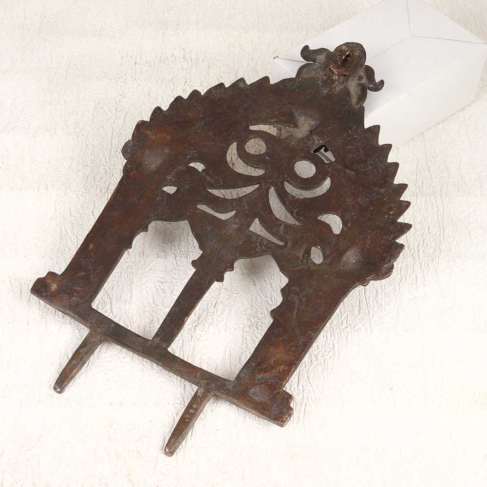 Reflect your artistic taste with this exotic brass prabhavali wall hanging. Make a statement and add a touch of boho flair to your walls with this brass prabhavali wall hanging. Hang this brass prabhavali in your living room, bedroom, entryway or any space needing an exotic focal point. Perfect for decorating your walls with artistic flair and cultural inspiration. Give your home a dose of bohemian style with this vintage brass wall hanging engraved with traditional Indian motifs. Vintage solid brass frame with hand-engraved Indian designs.