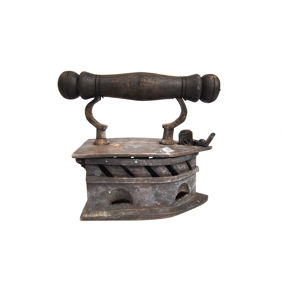 Brass Charcoal Sad Iron with Nice Turned Wooden Handle and Decorative Handle Post. It is Authentic and a Very Rare Home Collectible.