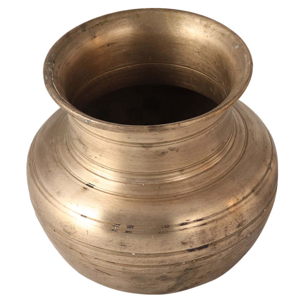 This vintage Kalash or water pot has a beautiful circular ring design on the sides. It is made of a white metal alloy. It has been used for Pitra Pooja in Hindu religion since ancient times. A Pitra Pooja is a prayer to remember the paternal ancestors. Use this Kalash for worshiping the god.