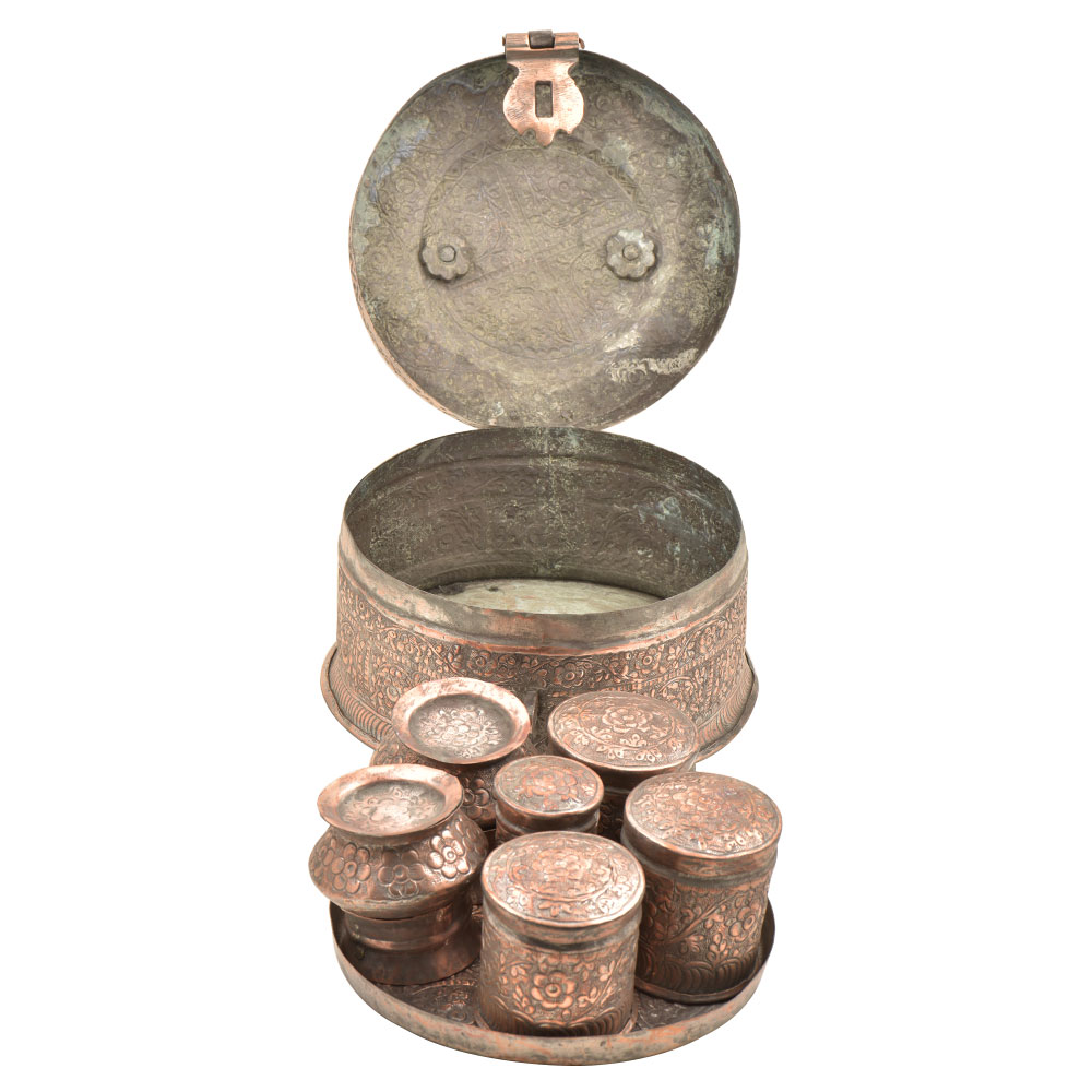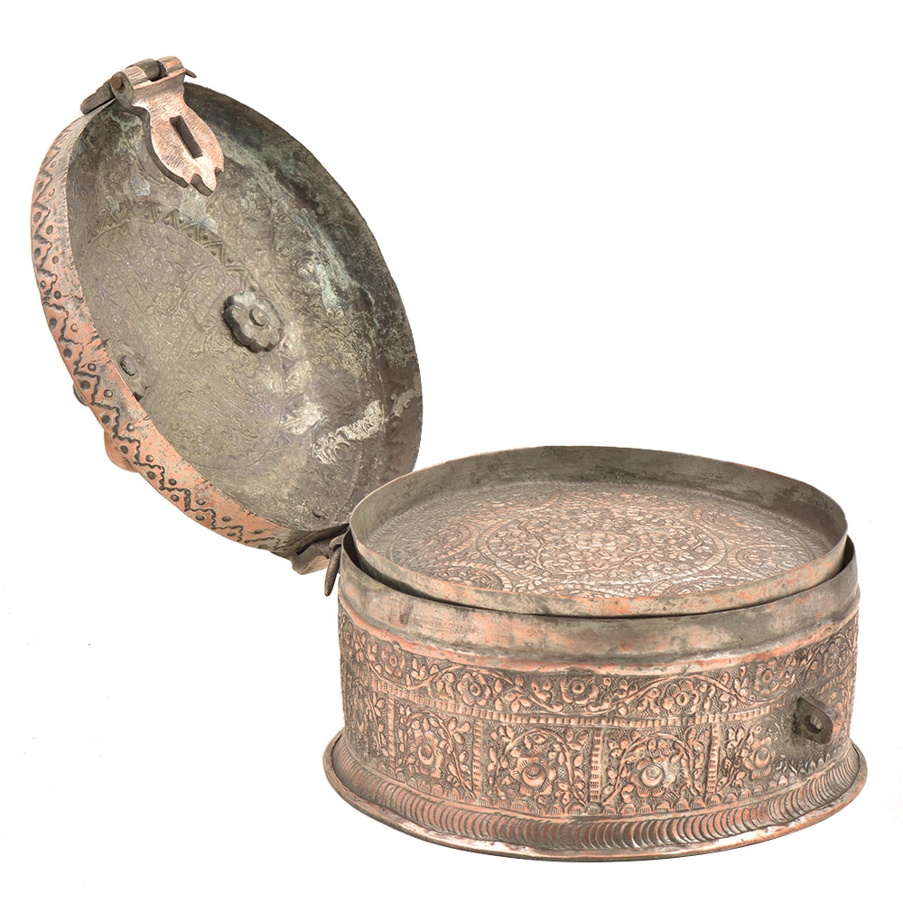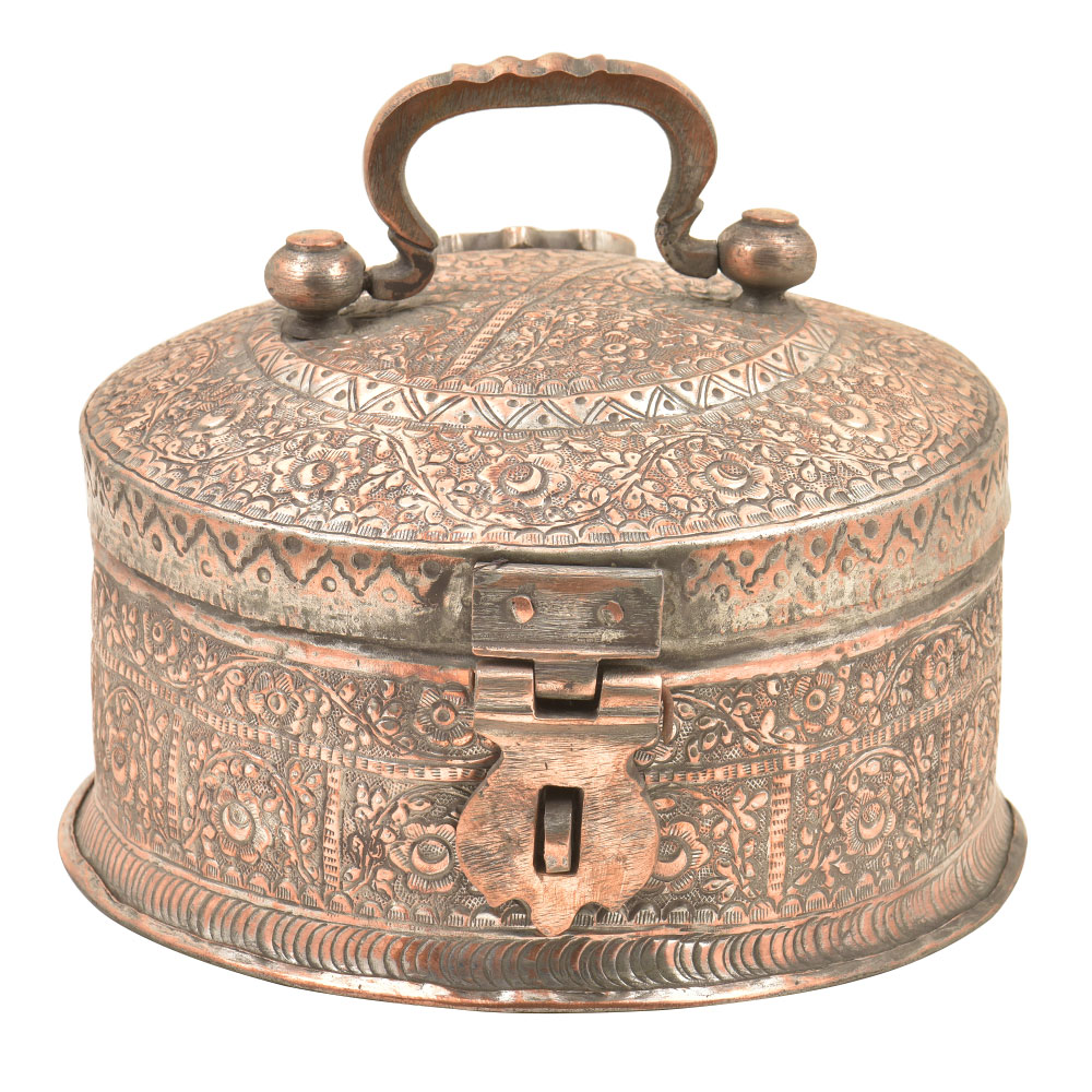 This Pan Daan is Made of Copper. It is Beautifully Crafted by the Artisans of India. The Pan Daan has Fine Detailing Having a Vintage Look Best for Collection Purpose Etc. The Pan Daan has a Beautiful Look Which will Grab People's Attention At Once. This Pan Daan Can Be Gifted to Someone Who Likes to Eat Pan.