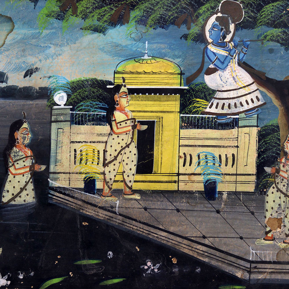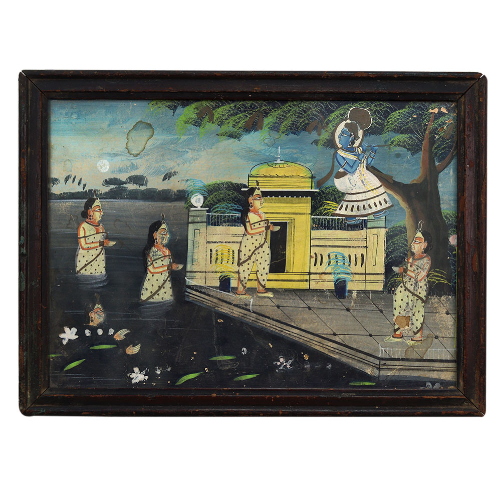 - Exquisite vintage painting depicting Lord Krishna amidst his adoring Gopis