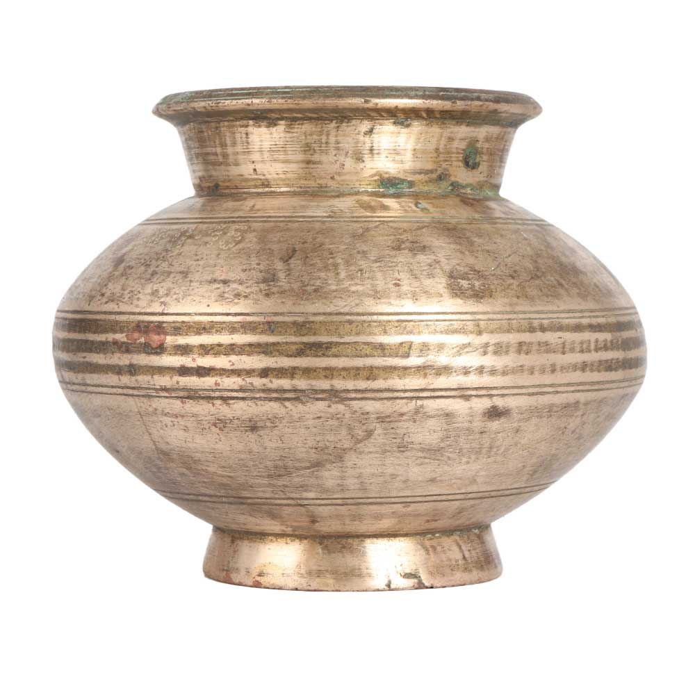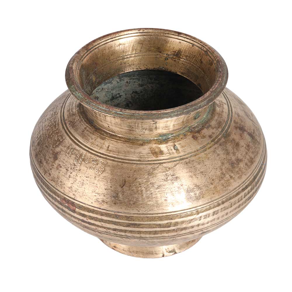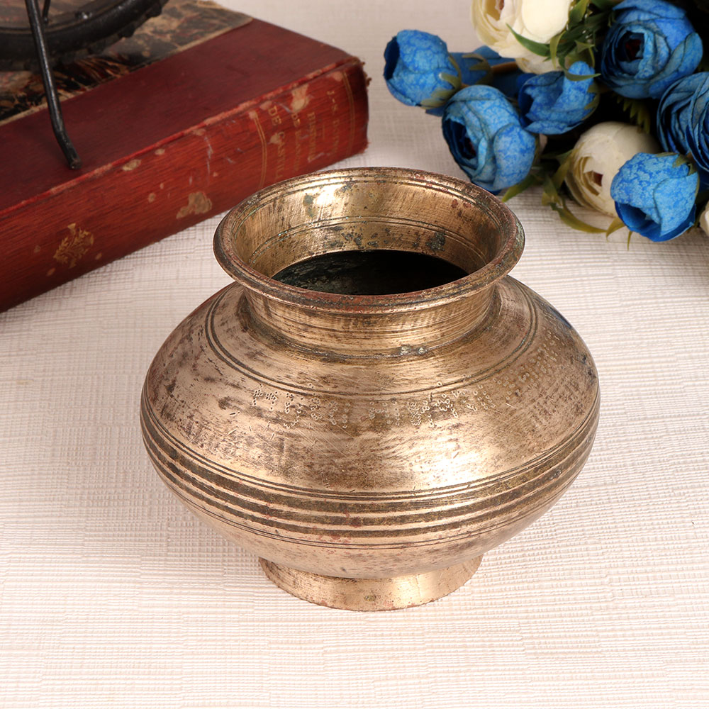 A vintage water pot to decorate your home, office, restaurant or hotel as an indoor flower pot. For centuries, the brass water pot has been used in temples to offer water to the Shivalinga as it absorbs the negative energy from the environment and spreads positive energy in the surrounding. Display it as a planter in the living room or hallway to enhance the interior design. Buy this brass lota online, which is made of high quality brass to give long lasting impression to the decoration. It is made by skilled Indian artisans with their hands, which makes it a real eye-catcher for your vintage collection. A gift for your loved ones for any special and festive occasion.