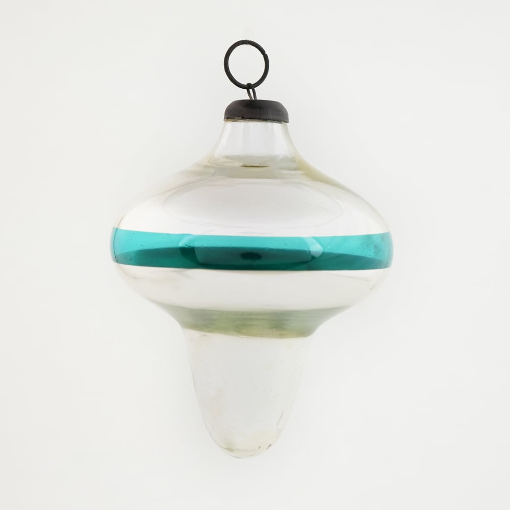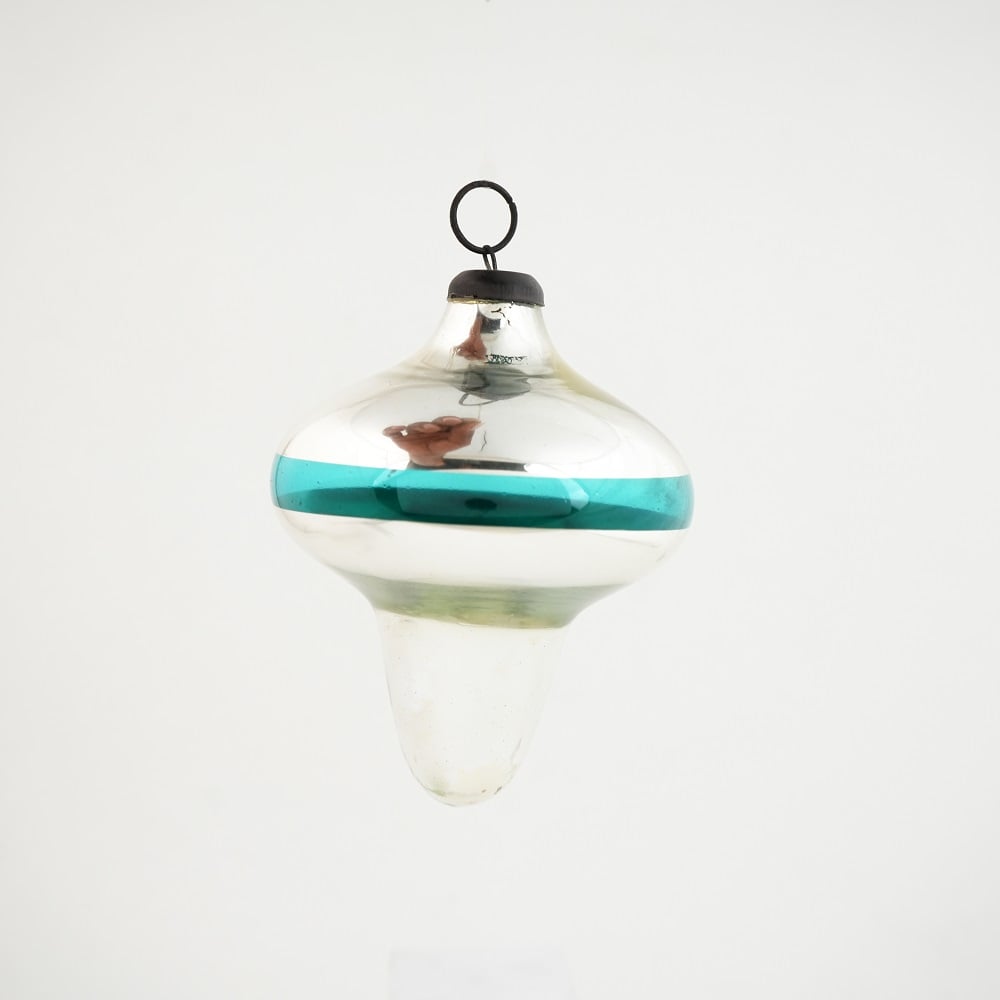 Vintage MercurySilver and Turquoise Glass Hanging Ornament. Crafted from high-quality glass with a smooth glossy finish, this decorative bauble adds a classic and festive touch to Christmas trees, wreaths, and holiday displays.