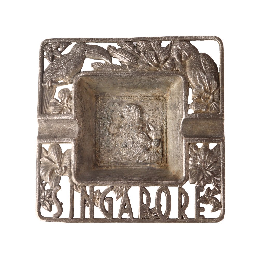 Buy a metal ashtray online on our website and get hassle-free delivery to your doorstep. This ashtray is made of high quality metal and leaves a remarkable impression in decoration. Engraved with beautiful floral motifs and birds and the text "SINGAPORE". One of the best metal ashtrays in India for you, your friends and relatives. An affordable ashtray to gift your friend, brother, cousin or relative on any occasion. Decorate your home, office, business or hotel with this antique style ashtray. An incredible item for your vintage art collection, decoration or exhibition.