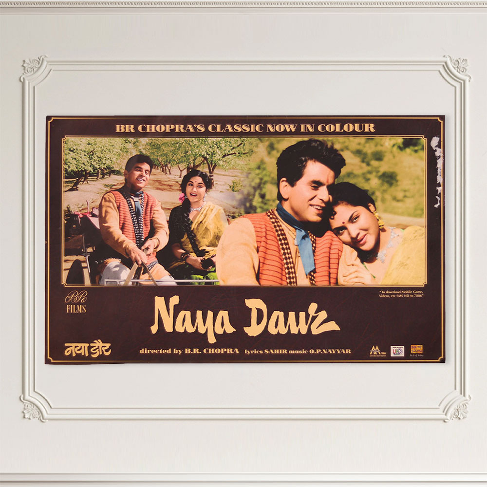 Elevate your space with the vintage allure of this Naya Daur movie print, a stunning recreation of the iconic 1957 Bollywood film. Naya Daur is widely regarded as one of the greatest Indian films of all time, a sweeping saga that blended romance, action, and social commentary to captivate audiences upon its release. Now you can bring that cinematic magic into your own space with this stunning movie print. Showcasing the film's lead actors in a powerful, dramatic pose, it's a mesmerizing work of art that will transport you back to the golden age of Bollywood. Whether you're a devoted fan of classic Indian cinema or simply appreciate timeless visual storytelling, this vintage Naya Daur print is a must-have addition to your home or office. Hang it in your living room, home theater, or workspace to infuse your space with vintage charm and cultural significance. It's the perfect conversation piece for movie buffs and art enthusiasts alike, a celebration of India's rich cinematic heritage that is sure to impress.