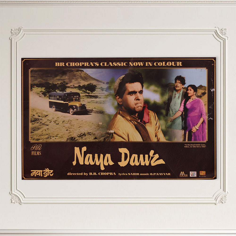 Escape to the Golden Age of Bollywood with this captivating vintage Naya Daur movie print painting. Meticulously hand-painted on high-quality canvas, this vibrant artwork captures the timeless magic of one of India's most beloved films. Naya Daur is a cinematic masterpiece that has enthralled audiences for generations. This painting allows you to experience the film's captivating essence in your own living space. Gaze upon the dramatic, commanding presences of the legendary stars as they embody the story's themes of tradition and modernization. Whether you're a devoted Bollywood fan or simply appreciate exceptional art, this vintage movie print is a must-have. It seamlessly blends cultural significance with eye-catching style, making it the perfect addition to your home. Elevate your décor, start conversations, and immerse yourself in the timeless allure of Indian cinema with this stunning, one-of-a-kind piece.