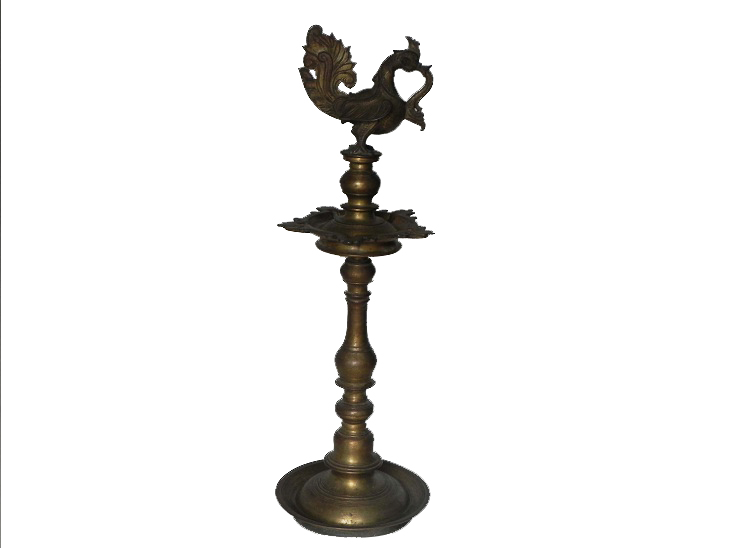 This Beautifully Shaped Vintage Oil Diya is Known as Peacock Oil Lamp(Peacock Diya). This Can Be Observed by the Design, the Symbols and the Figures Sculptured on This Lamp. It Adds Spiritual Flavor to Your Decor.