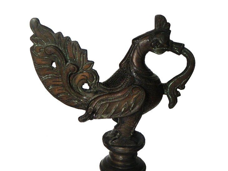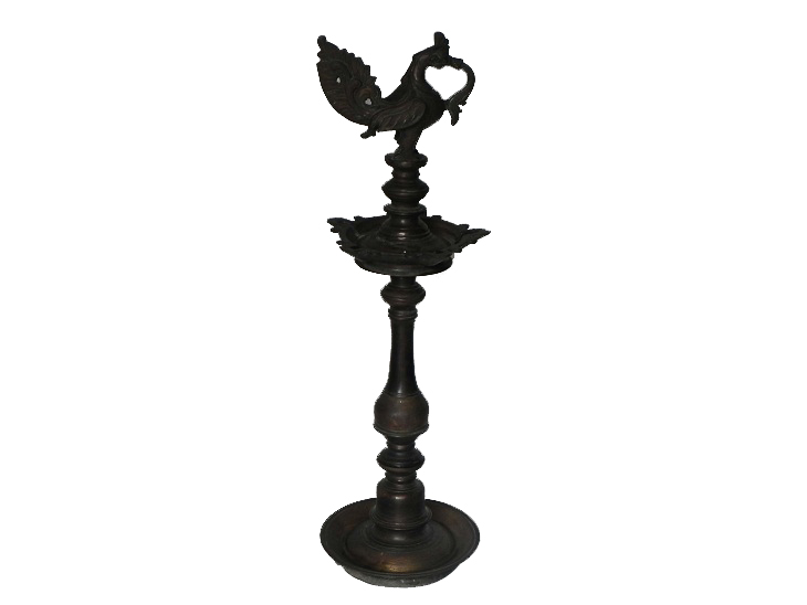This Beautifully Shaped Vintage Oil Diya is Known as Peacock Oil Lamp(Peacock Diya). This Can Be Observed by the Design, the Symbols and the Figures Sculptured on This Lamp. It Adds Spiritual Flavor to Your Decor.