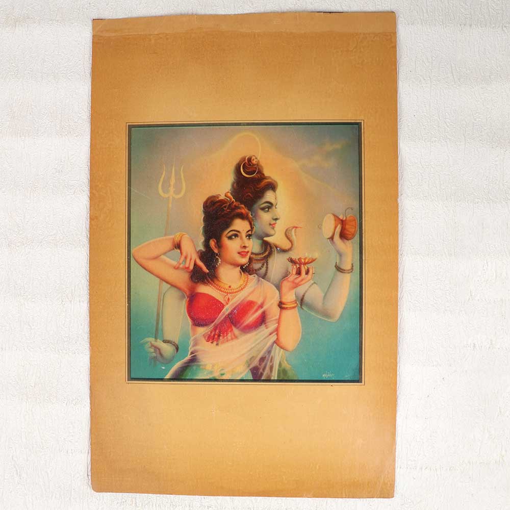 Step into the fascinating world of vintage Bengali art with this antique oleograph depicting Lord Shiva and Goddess Parvati. Lovingly preserved oleograph paper gives the print the authentic look and feel of a rare antique. Display this rare artwork proudly in your home to delight guests and honor your heritage. The vivid hues lend it an eye-catching focal point, while the saturated colors exemplify quintessential Bengali art. Ideal for devotees of Shiva and Parvati or collectors of ethnic art. Place it in your puja room to immerse yourself in spiritual imagery, or let it take center stage in your living room. A striking antique that will only grow more precious over time.