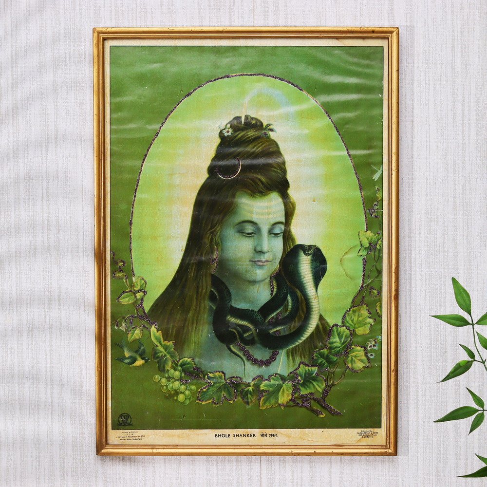 Prepare to be captivated by the majestic presence of Lord Shiva, immortalized in this exquisite vintage print from the colonial era. Crafted with unparalleled skill in Germany, this work of art is a testament to the enduring cultural exchange between the East and the West. This stunning print of Lord Shiva is more than just a decorative piece – it's a window into a bygone era, a tangible connection to the rich spiritual heritage of India. Display this exceptional work in your home or office, and let it inspire you to explore the profound teachings and captivating mythology of the Hindu faith. Whether you're a collector of vintage art, a devotee of Lord Shiva, or simply someone who appreciates the beauty of cultural exchange, this original print is a must-have addition to your collection. Immerse yourself in the captivating gaze of the Mahadeva and let this piece transport you to a world of timeless wisdom and spiritual enlightenment.