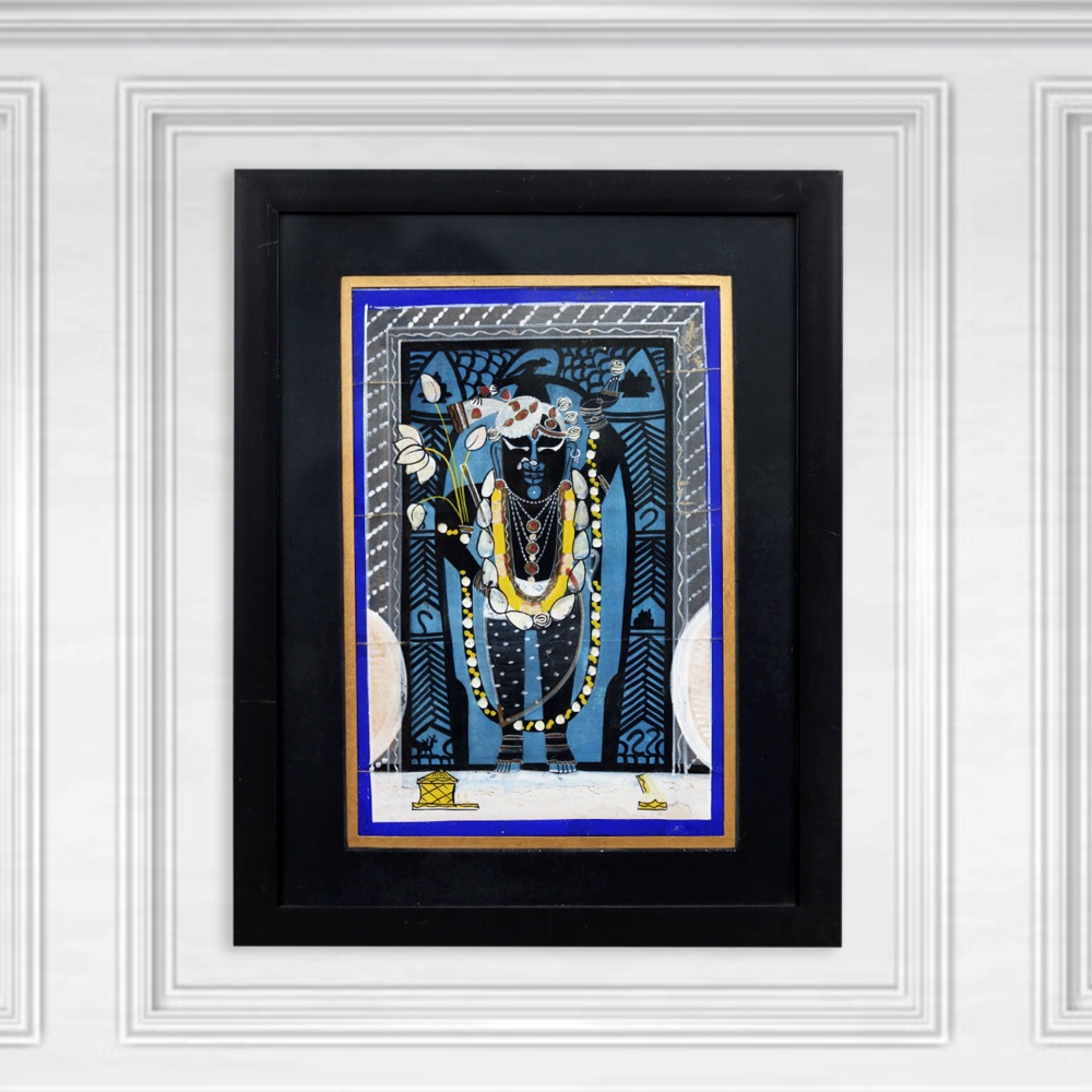 Immerse yourself in the captivating beauty of Lord Krishna with this stunning Vintage painting, masterfully created by skilled artisans in the renowned Nathdwara region. Brimming with vibrant, jewel-toned hues and intricate brushwork, this painting effortlessly captures the divine essence of the beloved deity, infusing your space with a sense of spiritual wonder and sacred energy. Whether you're a devoted follower of Lord Krishna or simply someone who appreciates the timeless elegance of fine art, this painting is a must-have addition to your home. Printed on high-quality, archival paper, this painting is built to last, ensuring that its beauty and significance will be preserved for generations to come. Bring the divine splendor of Lord Krishna into your home and surround yourself with the timeless elegance of this exquisite Vintage masterpiece.