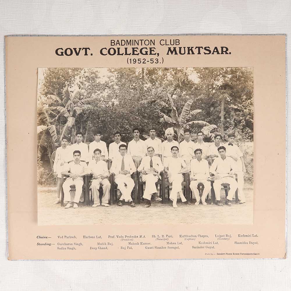 Bring history to life with this stunning vintage paper photograph of the Badminton Club from Government College in Muktsar, India. Captured in 1952-53 in crisp black and white, this photo offers a rare glimpse into the past and transports you back to a simpler time. This mesmerizing photo captures a Badminton Club team photo from Government College in Muktsar, India in 1952-53. Their youthful faces are filled with camaraderie and competitive spirit. For any history buff, this photograph is sure to delight. Ideal for history lovers, this vintage photograph will accent any room. Display it proudly and let the stories come alive each time someone notices the charming details that transport them back in time. Bring home a historical treasure and cherished memory today!