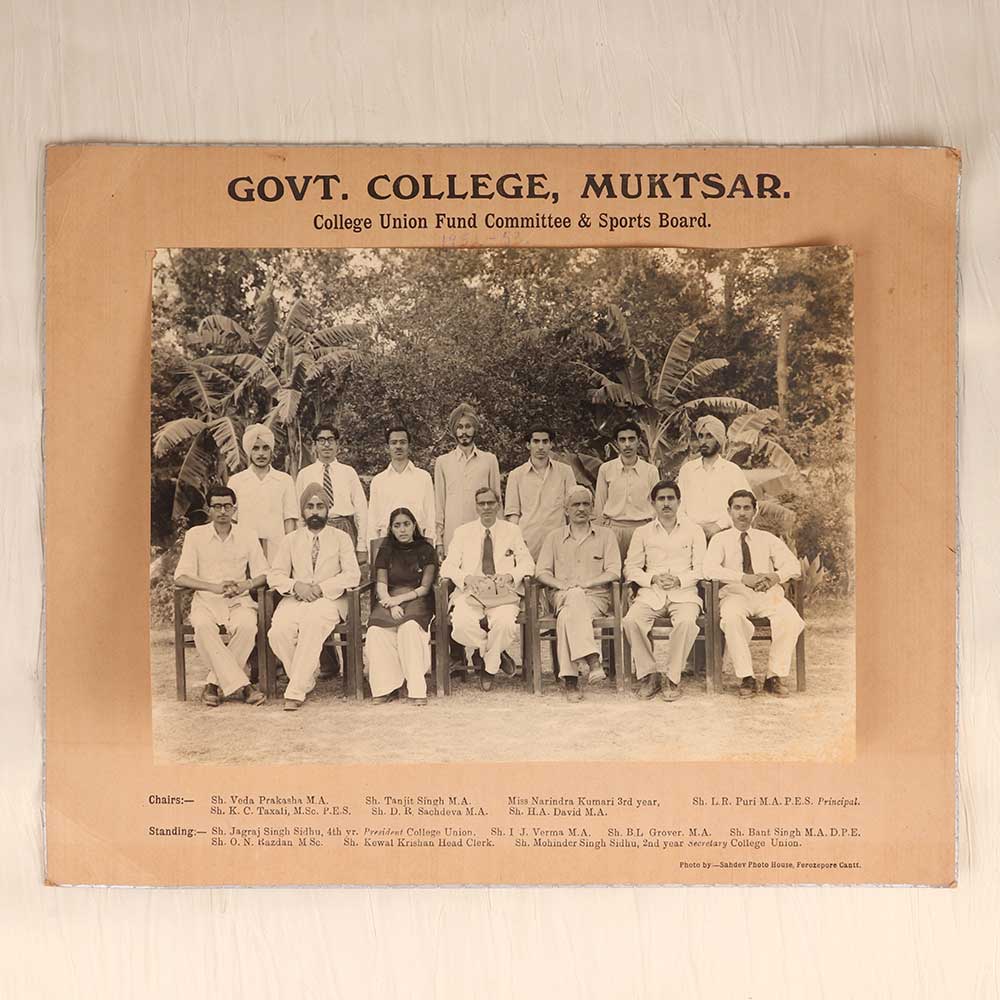 Capture a moment frozen in time with this stunning vintage paper photograph titled "Govt. College Muktsar" featuring the "College Union Fund Committee & Sports Board." This breathtaking black and white image transports you back to a simpler era and gives you a glimpse into the student life at this historic college. This photograph offers you a window into the past and immortalizes a special moment in the history of Govt. College Muktsar. It captures a group of young students, full of hopes and dreams, who came together to shape the future of their college community. Their youthful faces and earnest expressions give you a sense of the energy and optimism that must have filled the campus back in the day. Whether you are an alumnus wanting to revisit your college days, a history buff interested in Indian education, or simply someone who appreciates vintage photography, this image lets you connect with the past. Display it proudly in your home or office as a conversation starter about bygone times. Its nostalgic charm makes this photograph a prized possession for years to come.