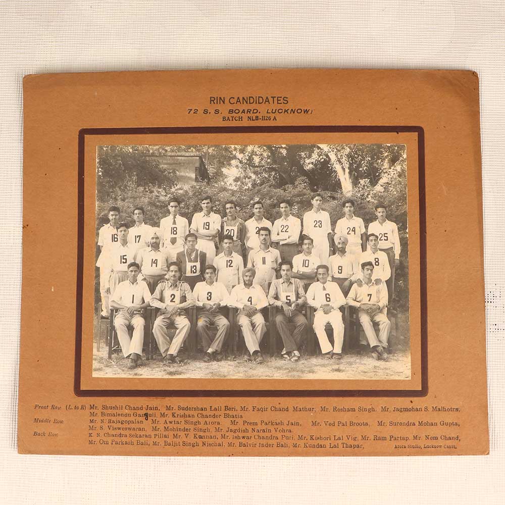 Step back in time with this captivating vintage photograph of the RIN Candidates from the 72 S.S. Board in Lucknow, Batch NLB-1126 A. This authentic snapshot provides a glimpse into the past and the inspiring young men who were part of it. This unique photograph captures the 72 bright-eyed officer candidates posing together in their uniforms before going off to serve their country. Their stoic expressions show their pride and readiness for duty. You can almost feel the camaraderie these young men must have shared. For history buffs, those who served, or anyone who wants a tangible piece of the past to display, this vintage photograph is sure to delight. The aged look enhances its nostalgic quality, making it a meaningful addition to any collection.