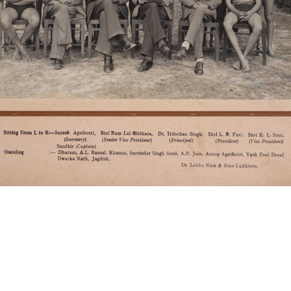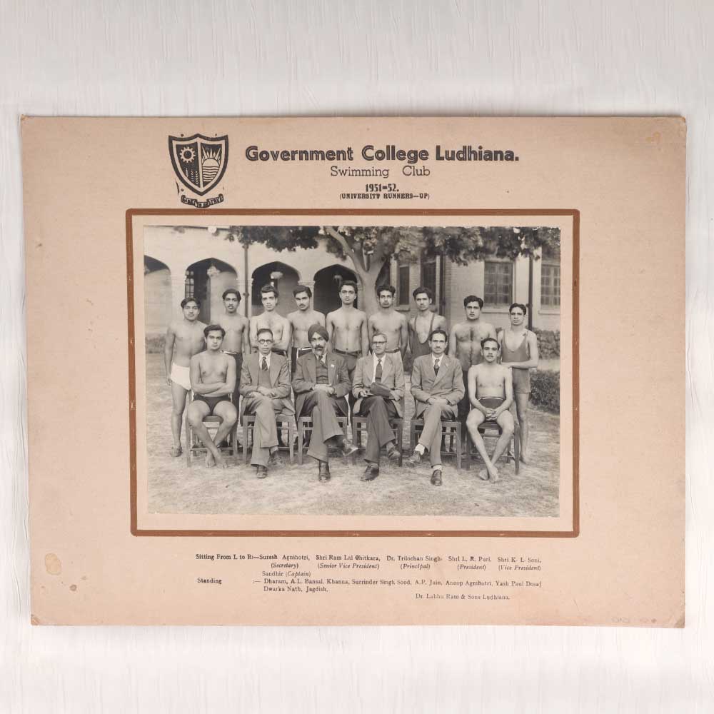 Relive history with this stunning vintage paper photograph of the Government College Ludhiana Swimming Club from 1951-52. This breathtaking black and white image transports you back in time, allowing you to glimpse into the lives of these young athletes decades ago. This remarkable photograph offers a window into the past. See the swim caps and uniforms, the happy faces of the team, and the camaraderie between them. Displayed in your home, it's sure to draw people in and spark meaningful conversations about times gone by. Photograph collectors and history enthusiasts will treasure this vintage find. Bring the spirit of the 1950s into your life and honor the legacy of this Ludhiana swimming team by adding this nostalgic photo to your collection today!