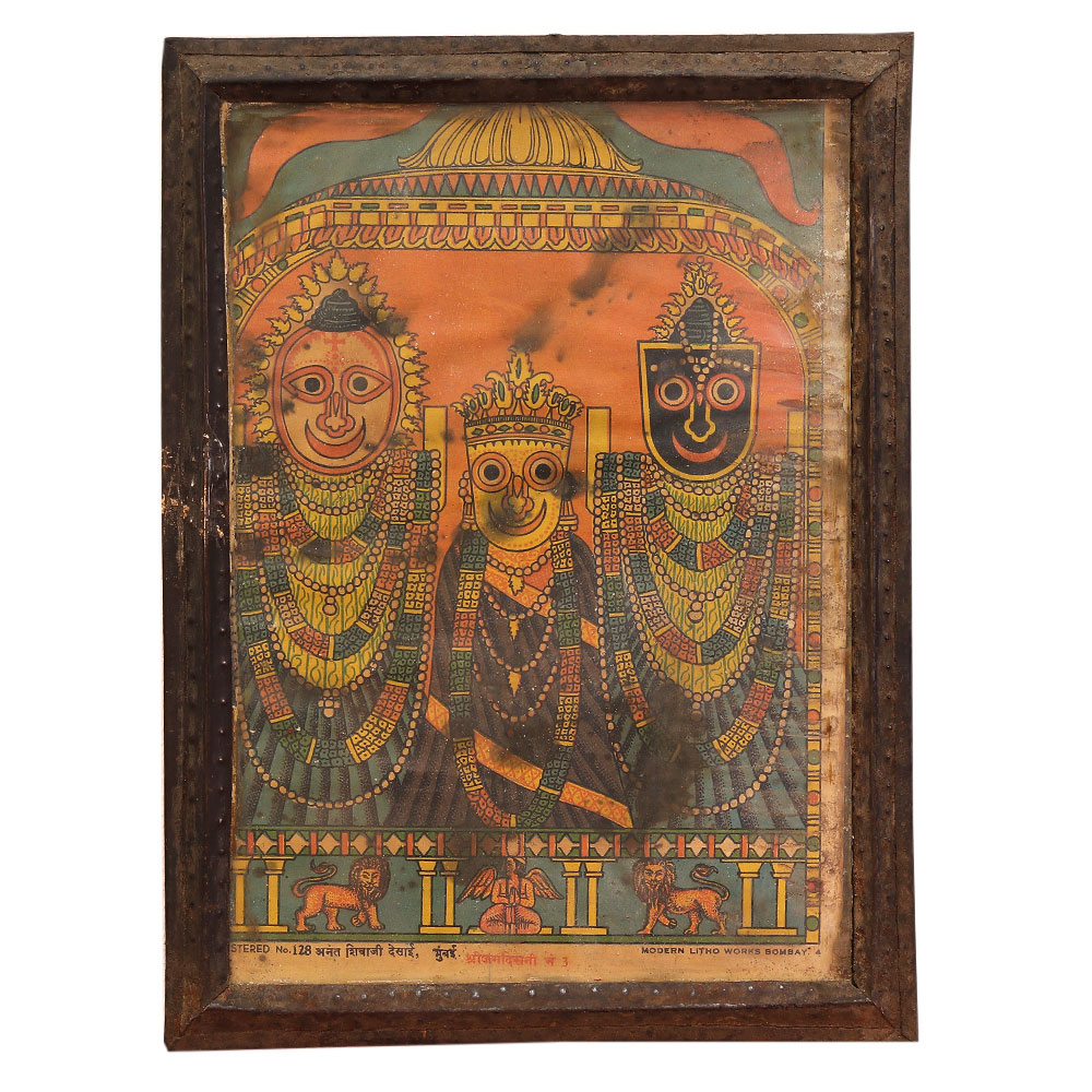 Immerse yourself in the timeless beauty and spiritual significance of Lord Jagannath with this captivating vintage paper print. Crafted with the utmost care and reverence, this artwork showcases the divine features of the revered deity in all their splendor, transporting you to a realm of transcendent wonder and enlightenment. The vibrant colors and intricate details of this print have been meticulously preserved, ensuring that the essence of the sacred icon is captured with the utmost fidelity. Elegantly framed in a sleek metal frame, this piece will elevate the ambiance of any space, transforming it into a serene sanctuary where the divine presence of Jagannath can be felt and honored. Whether you're a devotee seeking to deepen your spiritual connection or an art enthusiast drawn to the timeless beauty of this masterpiece, this vintage Jagannath print is a must-have addition to your collection. Bring it home and let it become a constant source of inspiration, reminding you of the infinite wisdom and boundless compassion that emanate from the divine.