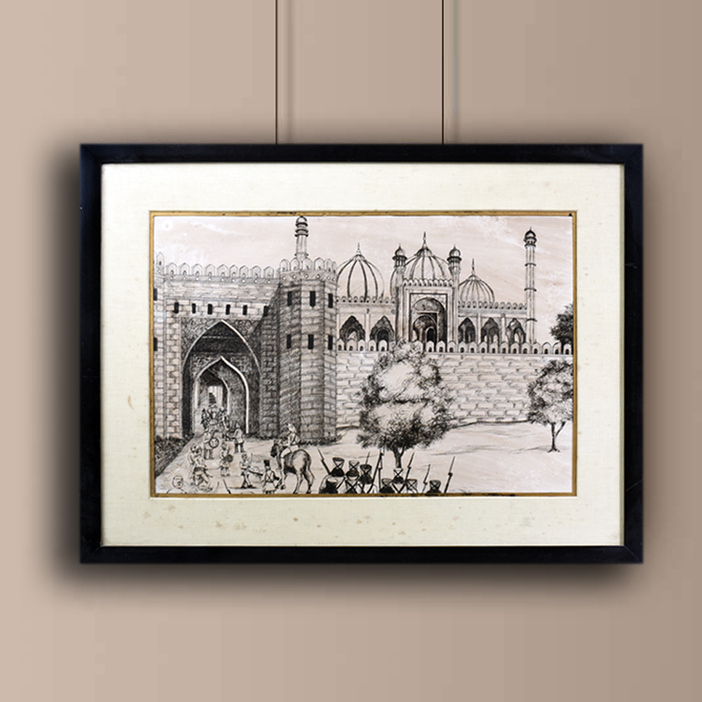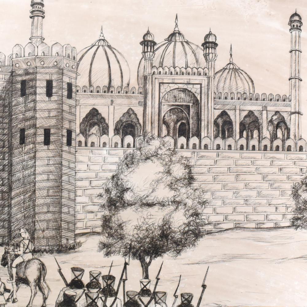 Immerse yourself in a pivotal moment of India's past with this stunning vintage paper sketch of the Looting by British soldiers at Red Fort Delhi lithograph. This exquisite reproduction captures the raw emotion and significance of a nation's struggle against colonial oppression, inviting you to reflect on the sacrifices and resilience of those who fought for independence. As you gaze upon this captivating sketch, you'll be transported to the heart of the Red Fort, witnessing the chaos and devastation wrought by the invading British forces. The intricate details and powerful composition evoke a palpable sense of tension, reminding us of the pivotal role this historic event played in shaping the course of India's history. Whether you're a history enthusiast, art lover, or simply someone who appreciates the power of visual storytelling, this vintage Red Fort paper sketch is a must-have addition to your collection. Bring home this stunning lithograph and let it inspire you to learn more about India's rich cultural heritage and the ongoing fight for freedom.