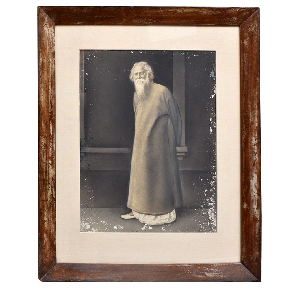This breathtaking vintage photograph transports you back in time to the early 20th century, offering a rare glimpse into the life of one of the most influential figures in Bengali literature. Ravindranath Tagore, the first non-European to win the Nobel Prize in Literature, gazes pensively into the camera, his piercing eyes and contemplative expression hinting at the brilliance of his poetic mind. Preserved in its original antique wooden frame, this photograph is a stunning work of art that will elevate the ambiance of any space. Whether you're a lover of classic literature, an admirer of timeless portraiture, or simply seeking to add a touch of vintage elegance to your decor, this photograph is a must-have. Display it prominently in your living room, home office, or library to inspire creativity and reflection on the enduring power of the written word.