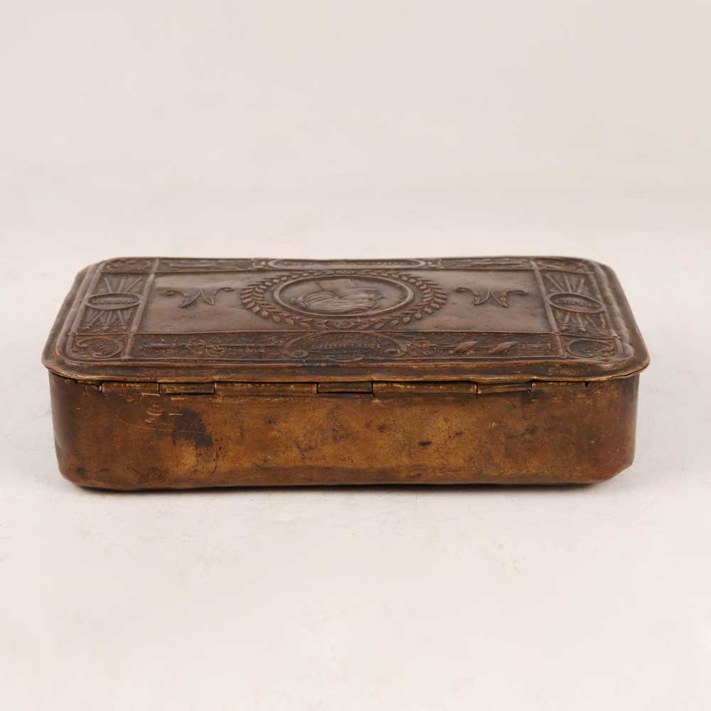 Buy a Vintage Brass Box online from our website which is a timeless piece that exudes elegance and sophistication. Crafted in a classic rectangular shape, this captivating treasure showcases a beautifully engraved Victoria face on its top, evoking a sense of historical charm and regality. Handcrafted by talented artisans with meticulous attention to detail, this box is a true masterpiece of craftsmanship. The use of high-quality brass ensures its sturdiness and longevity, while its antique brown finish adds a touch of warmth and nostalgia, enhancing its vintage appeal. Originally designed to store cigars, this box serves not only as a functional keepsake but also as a stunning decor item for any space. Whether adorning the shelves of your home, office, restaurant, hotel, or cafe, it effortlessly complements any setting, adding a touch of sophistication to its surroundings. Ideal for collectors, this brass box is a perfect addition to a vintage collection or an eye-catching display at exhibitions. Moreover, it makes for a thoughtful and memorable gift for your loved ones on special, festive, or auspicious occasions, symbolizing your appreciation and affection in a truly timeless manner.