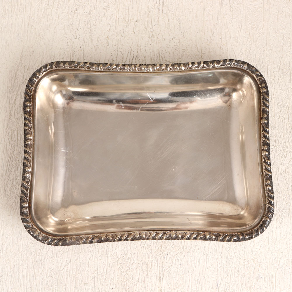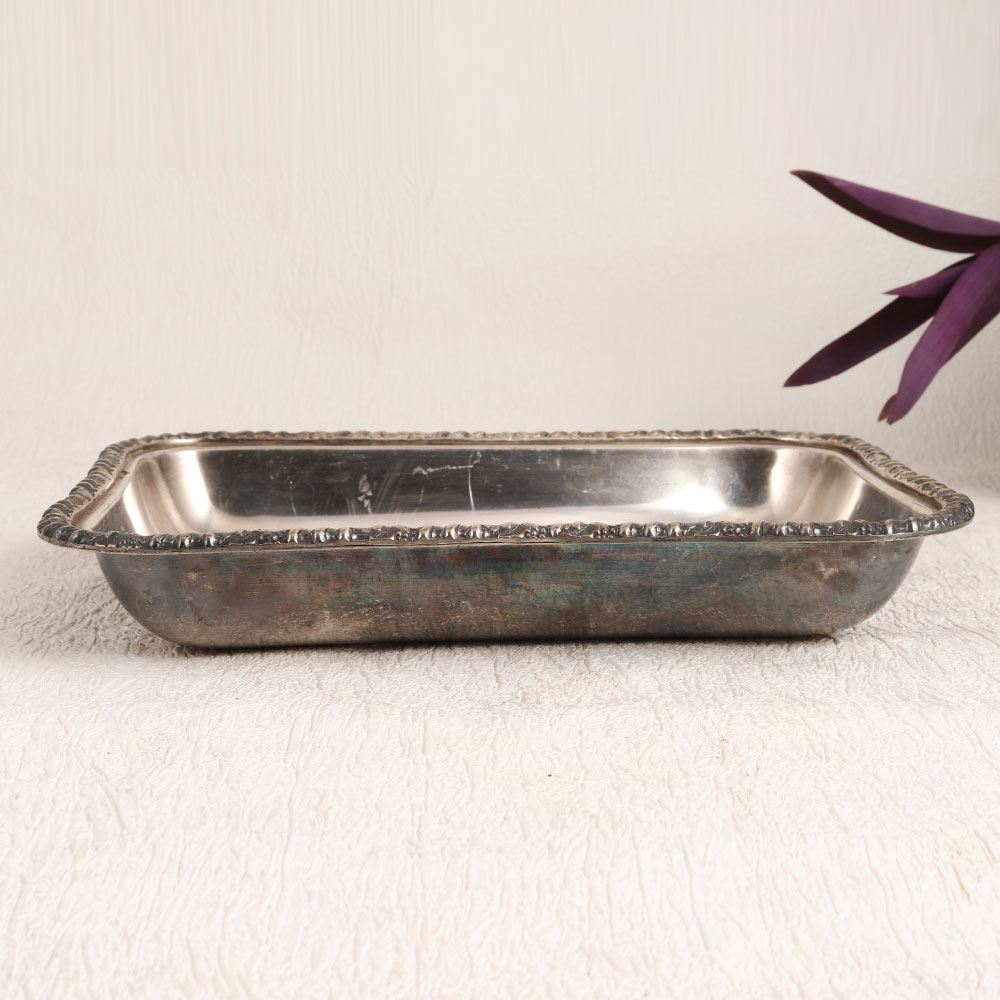 Buy a vintage white metal food tray online and get it delivered right at your doorstep. Crafted in a timeless rectangle shape, this tray exudes an air of elegance and nostalgia. Its unique charm lies in the intricate patterns adorning its edges, showcasing an antique silver finish reminiscent of a bygone era. Each tray is handmade by highly skilled and experienced artisans, capturing the essence of English Artistry. Crafted from high-quality white metal, it is not only a functional serving accessory but also a work of art in its own right. This versatile piece finds its place in a variety of settings, from your home to your office, and even in establishments like hotels, cafes, shops, or restaurants. It effortlessly complements your decor, enhancing its aesthetic appeal. Beyond its decorative utility, this vintage tray makes a thoughtful gift for your family, friends or relatives on special, festive, or auspicious occasions. It also holds a special place in vintage collections, reflecting the timeless beauty of artisan craftsmanship.