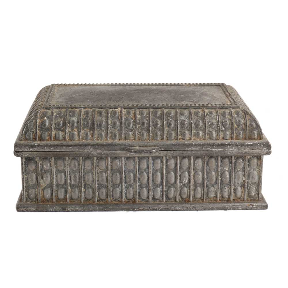The Vintage rectangular shape box in English art is a heritage collectible. It instantly adds and enhances the beauty of your home. The vintage style and detailing add a mesmerizing impression on all. It can also be used to store small products. The product is handcrafted and features slight irregularities that make it an excellent gift on special occasions.