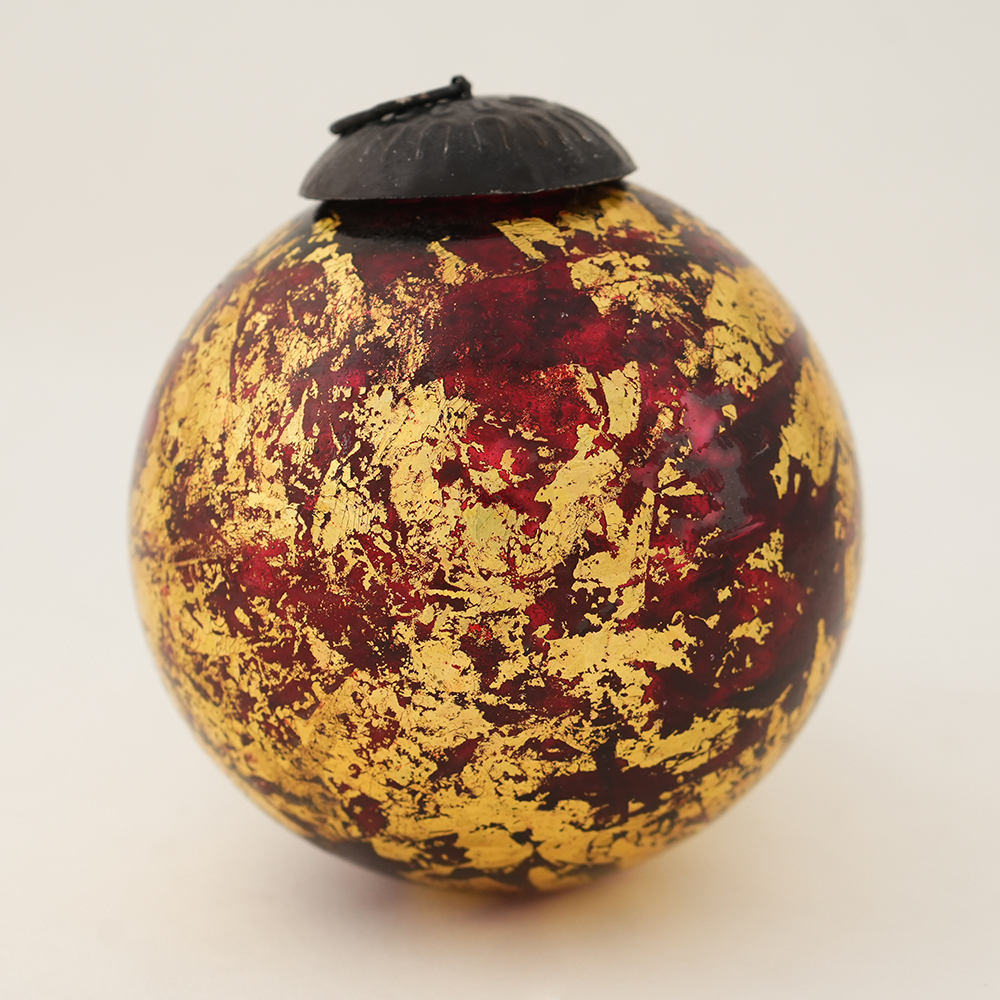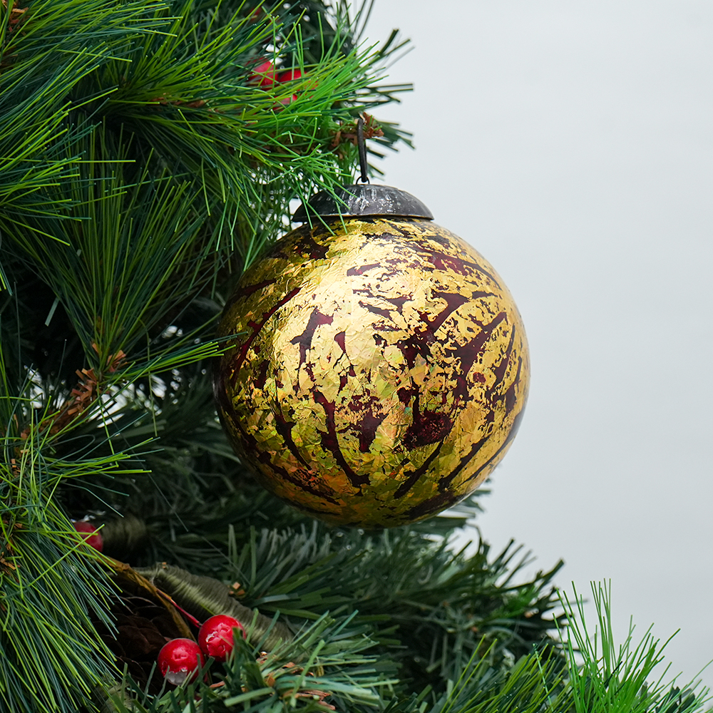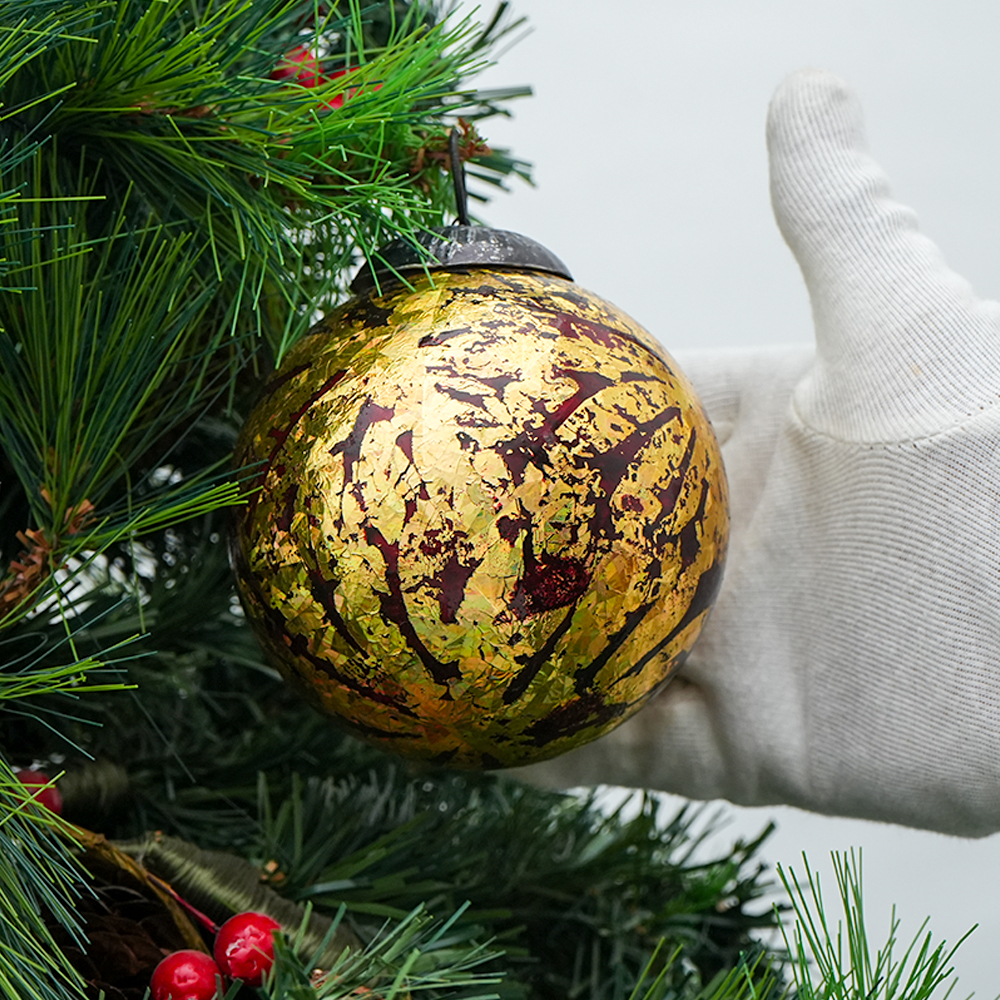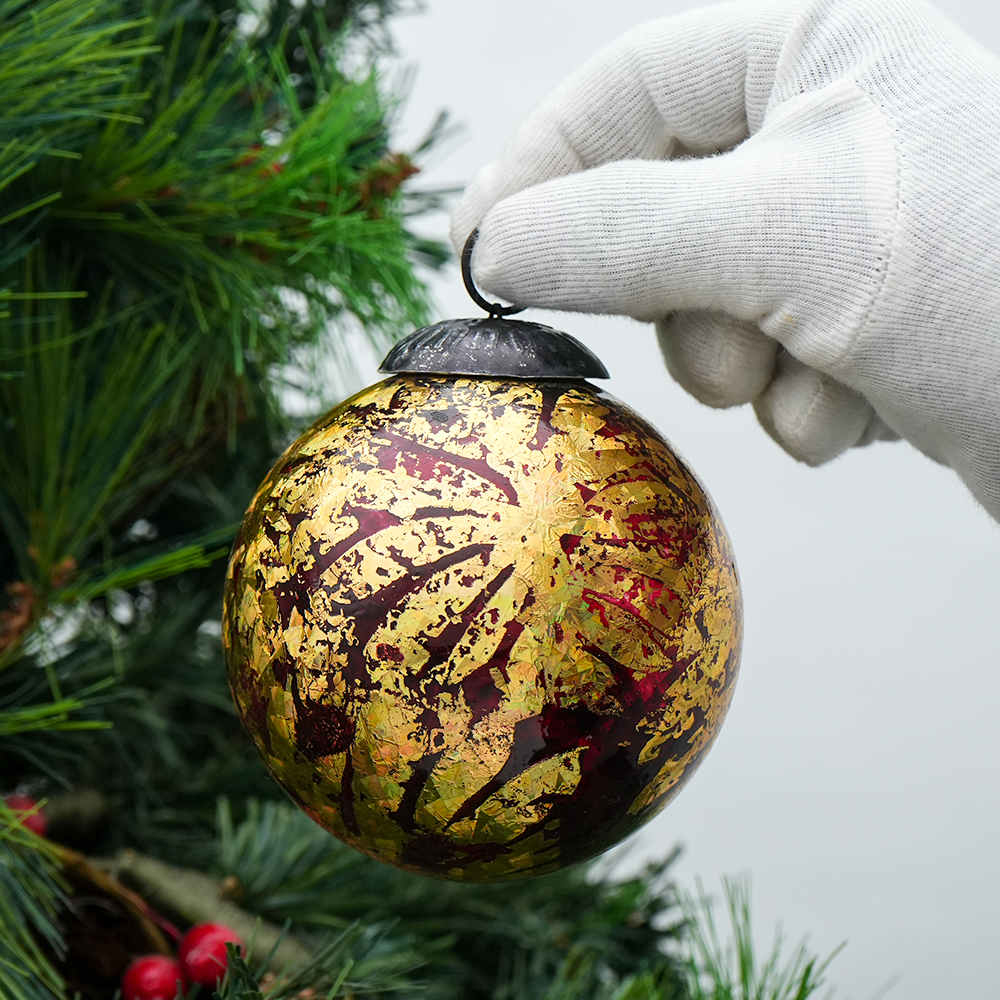 Vintage Red and Gold Glass Christmas Ornament . Crafted from high-quality glass with a smooth glossy finish, this decorative bauble adds a classic and festive touch to Christmas trees, wreaths, and holiday displays.