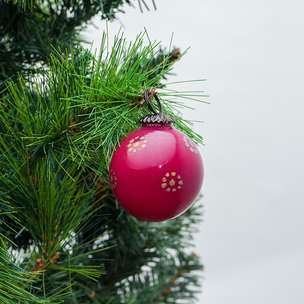 Vintage Red Glass Floral Pattern Christmas Ornament . Crafted from high-quality glass with a smooth glossy finish, this decorative bauble adds a classic and festive touch to Christmas trees, wreaths, and holiday displays.