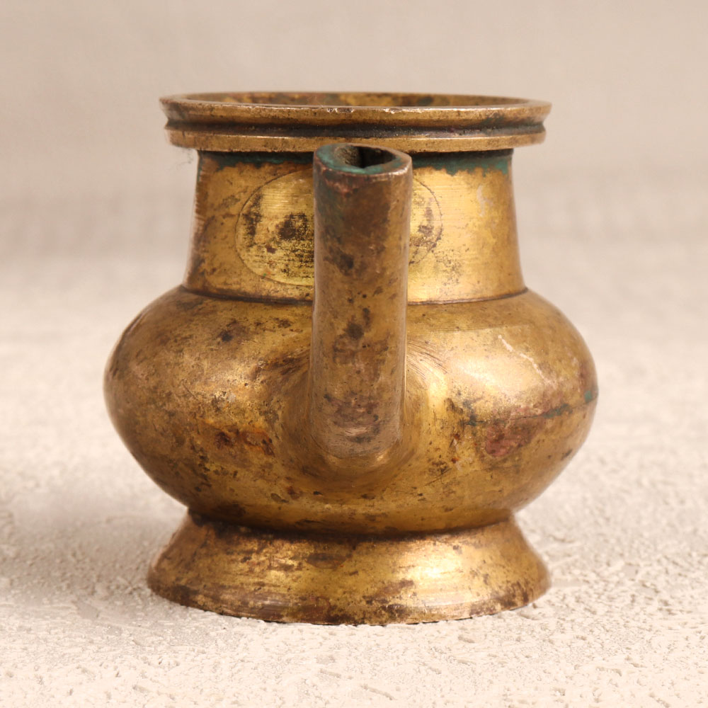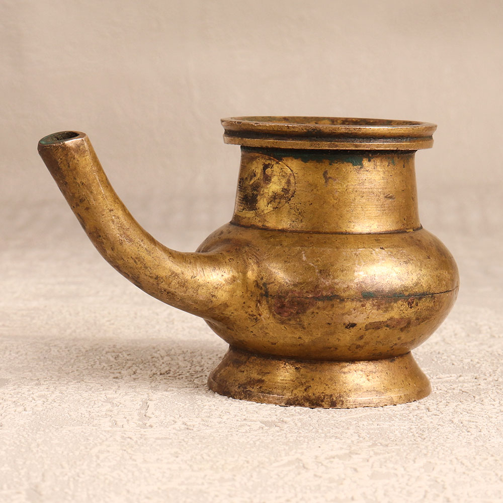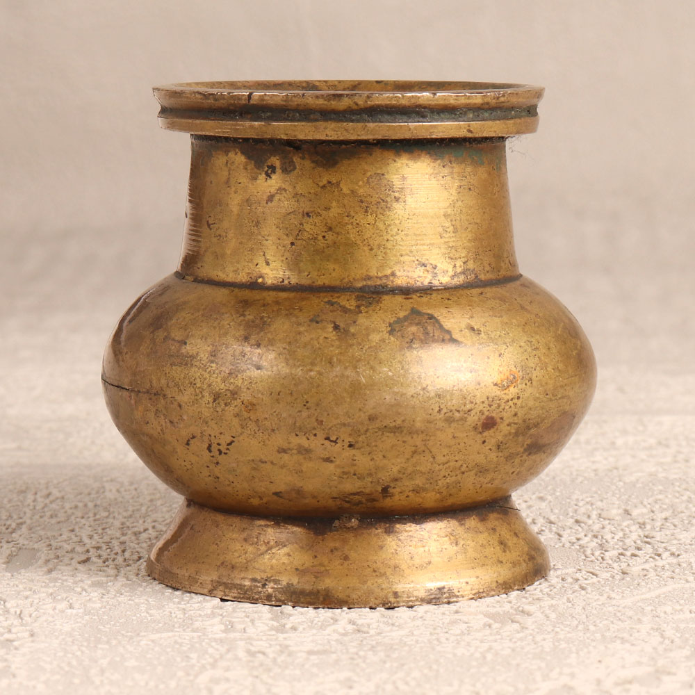 A Vintage Brass Holy Water Pot which is affectionately known as the Sagar Pot, boasting an alluring antique brown finish. Handcrafted by highly skilled and experienced Indian artisans steeped in South Indian Art, this pot emanates timeless elegance. Crafted from high-quality brass, it serves as a sacred vessel during prayers, havans, and rituals, cradling holy water with grace. Beyond its spiritual utility, this pot transforms seamlessly into a charming flower holder, adding a touch of mystique to any setting. Whether adorning your home, office, cafe, restaurant, or hotel, its versatility shines through. A testament to craftsmanship and history, it is a coveted addition to vintage collections and a captivating exhibit piece. Elevate the spiritual ambiance or bestow the gift of sacred charm upon your family, friends or relatives during special, festive, or auspicious occasions.