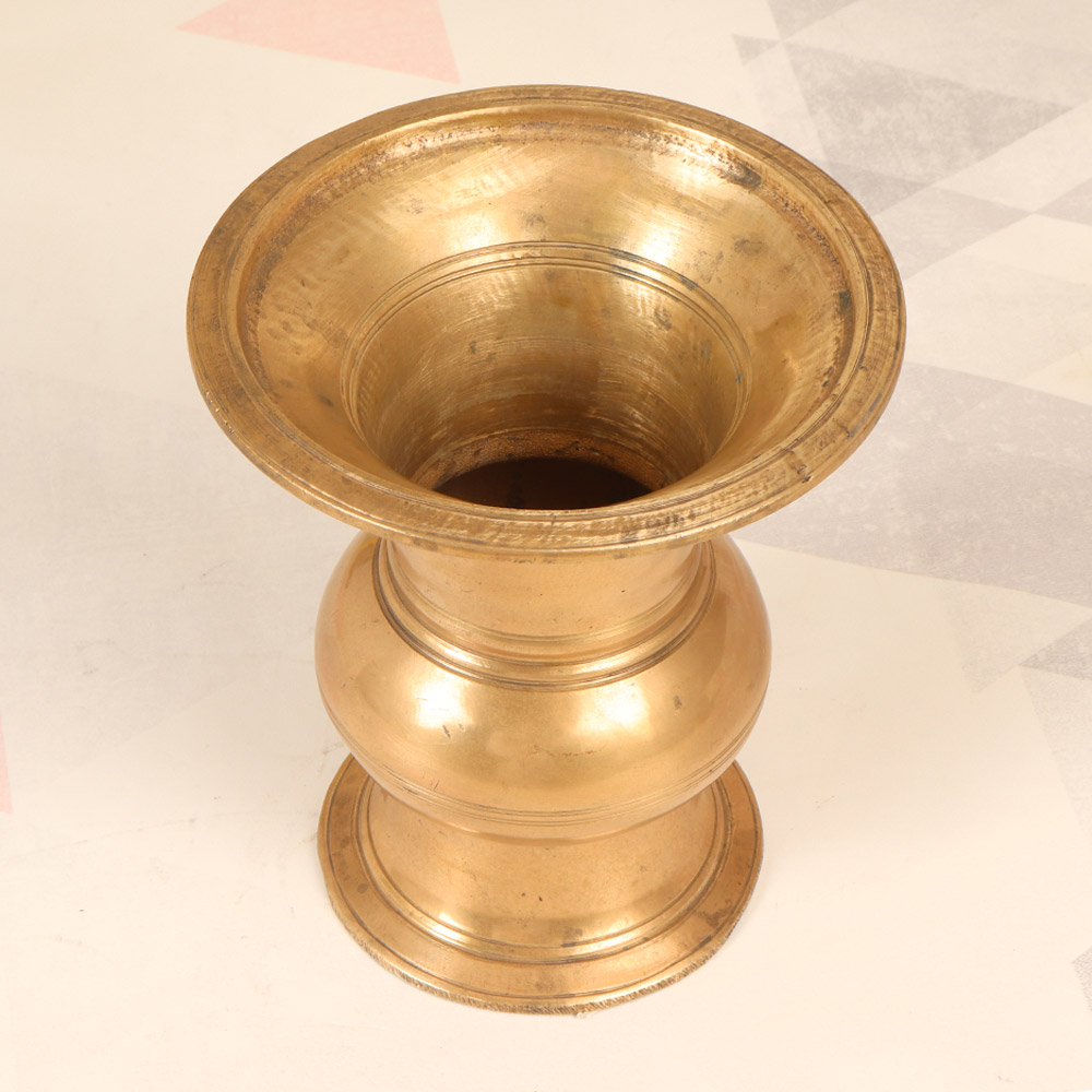 Embark on a journey of deeper spiritual connection with this exquisite brass holy pot, a vessel imbued with the timeless artistry of South India. Crafted with meticulous attention to detail, its plain brown finish lends an air of understated elegance, allowing the inherent beauty of the metal to shine. Whether you choose to fill it with the warm glow of candles, the fragrant wisps of incense, or the sacred offerings of your puja practice, this holy pot will become a cherished centerpiece in your home. Rooted in the rich artistic heritage of the region, this brass masterpiece is a testament to the enduring skill and devotion of South Indian craftspeople. Seamlessly blending form and function, this holy pot is a versatile addition to any decor, complementing both modern and traditional spaces with equal grace. Invite the timeless allure of South Indian brass artistry into your life and let this holy pot become a source of inspiration, contemplation, and spiritual nourishment. Embrace the beauty of simplicity and allow this vessel to become a cherished part of your mindfulness practice, elevating your journey towards deeper self-awareness and connection.