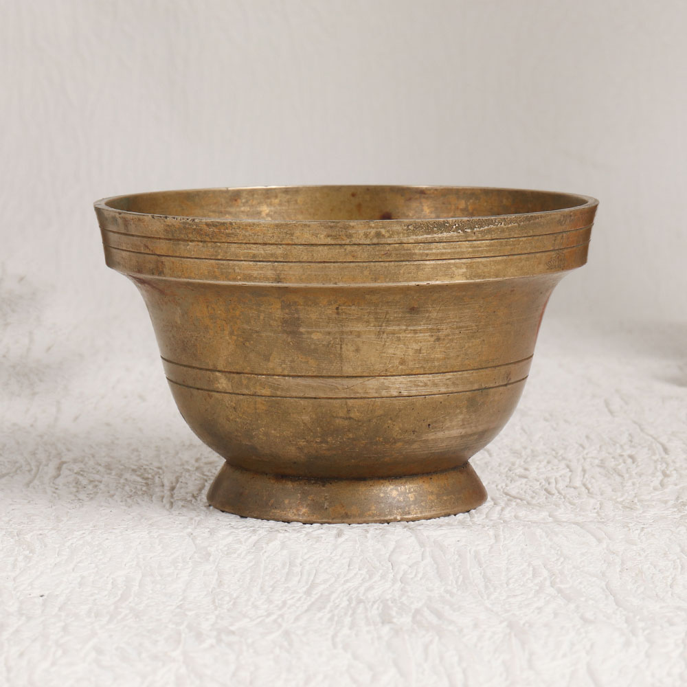 Enhance your home interior with the timeless elegance of this exquisite vintage brass kumkum bowl. Crafted with meticulous care by skilled Indian craftsmen, this piece showcases the rich heritage of South Indian artistry. The antique brown finish adds an authentic and rustic charm that transports you to a bygone era. Made from high-quality brass, this kumkum bowl is not only a stunning decoration but also a functional piece. Whether you place it in your home, office, restaurant, hotel, cafe, or shop, it radiates an aura of cultural significance and beauty. During prayers, it serves as a sacred vessel to store kumkum tilak, adding a touch of spirituality to your space. This vintage brass kumkum bowl is an excellent addition to your antique collection or exhibition display, showcasing the craftsmanship of Indian artisans. Its versatility makes it a thoughtful gift for your family, friends or relatives on special, festive, or auspicious occasions, spreading the charm and cultural richness of India with every use.