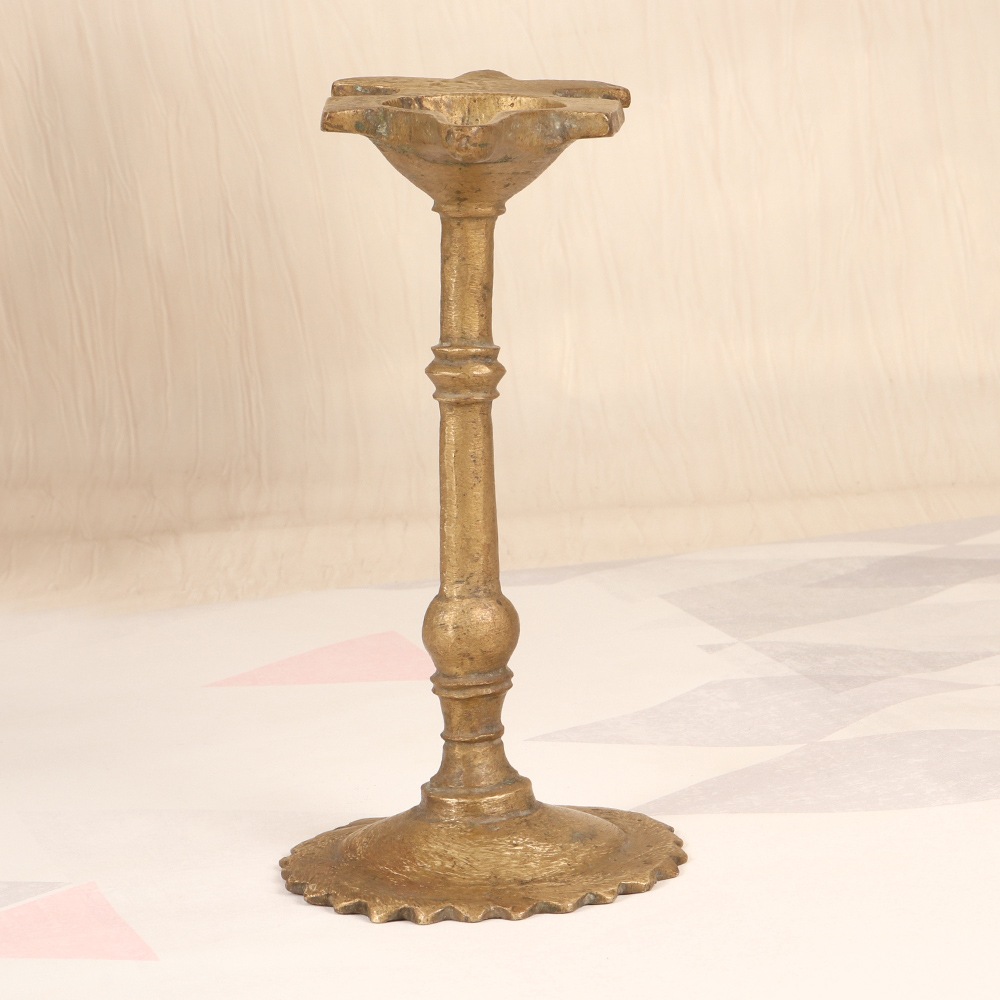 Escape the confines of modern life and step into the enchanting world of traditional South Indian lighting with our exquisite vintage brass oil lamp. Crafted with meticulous attention to detail, this lamp harnesses the power of natural illumination, casting a warm, inviting glow that will transport you to another era. Imagine the mesmerizing dance of flickering light as the flame dances atop the wick, creating a soothing, calming ambiance that soothes the senses and nourishes the soul. Whether you're seeking a natural, eco-friendly lighting solution for your home, or you simply want to infuse your space with the timeless beauty of South Indian art, this brass oil lamp is the perfect addition to your life. This lamp is a testament to the enduring artistry and craftsmanship of South India, where the art of oil lamp making has been perfected over generations. It's not just a functional piece – it's a work of art that will captivate and inspire all who behold it. Elevate your living space and immerse yourself in the timeless beauty of this stunning brass oil lamp, and let its warm, inviting glow transport you to a world of tranquility and wonder.