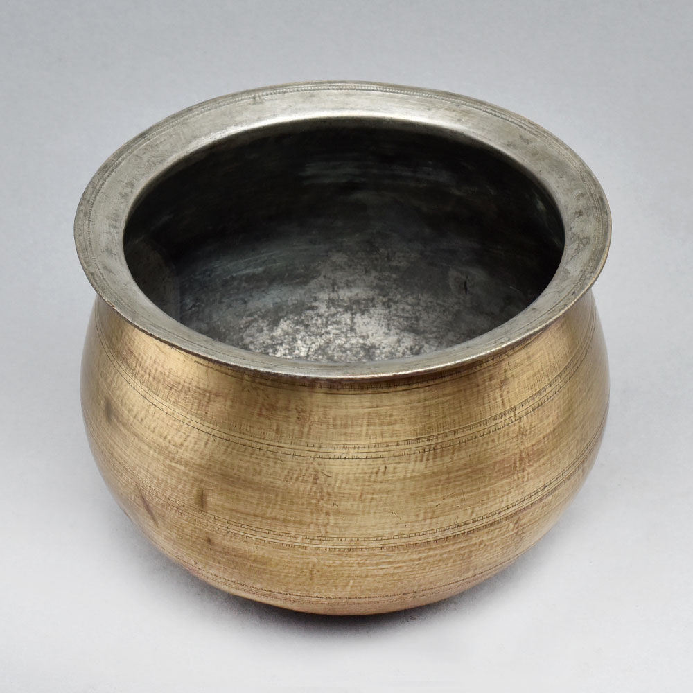 Discover the captivating allure of South Indian artistry with this stunning Vintage South Indian Art Plain Brass Pot.This magnificent brass pot is more than just a decorative accent - it's a functional work of art that celebrates the enduring legacy of South Indian craftsmanship. With its substantial size and classic, minimalist design, this piece seamlessly blends form and function, making it a versatile addition to your home. Use it to serve traditional Indian dishes, display fresh flowers, or let it shine as a captivating centerpiece that commands attention. Whether you're a design enthusiast, a lover of Indian culture, or simply someone seeking to infuse their space with a touch of timeless elegance, this Vintage South Indian Art Plain Brass Pot is the perfect choice. Embrace the enduring beauty of South Indian artistry and let this magnificent piece become the focal point of your living space, imbuing it with the captivating essence of India's rich heritage. Handcrafted from premium brass in the rich, time-honored traditions of South India Generously sized with a wide, rounded mouth for diverse uses Sturdy, durable construction built to withstand everyday use Adds an authentic touch of Indian charm to any space