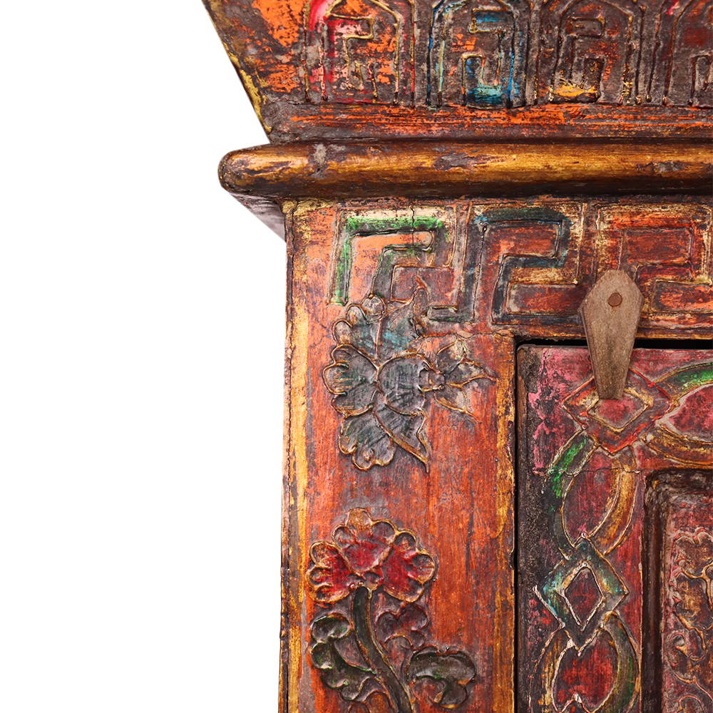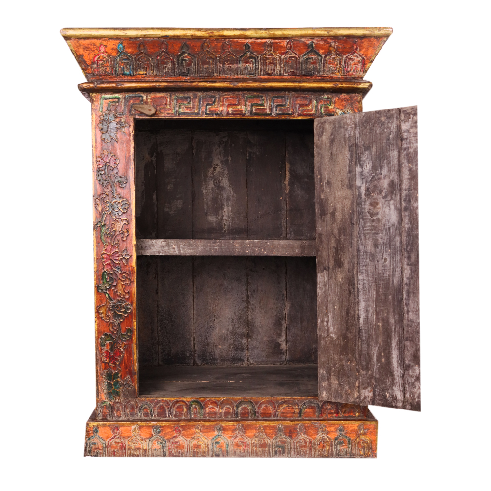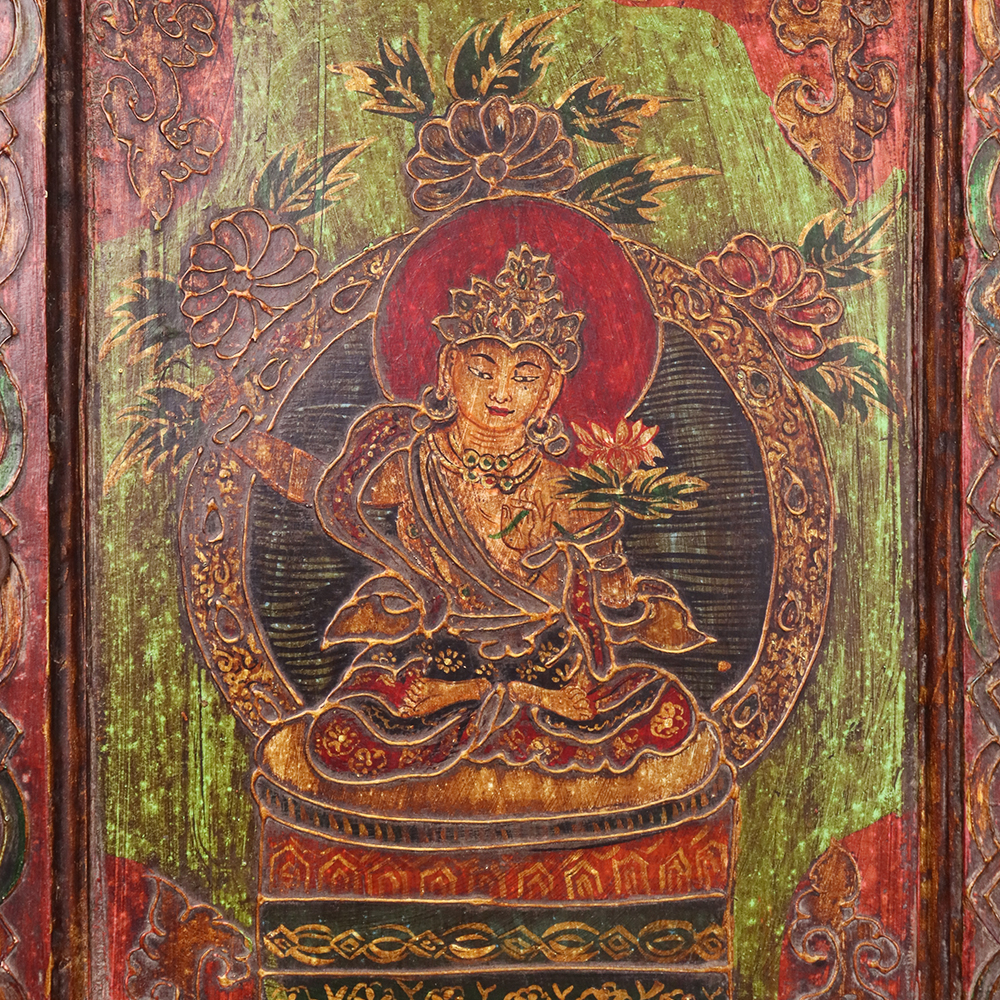 Bring home a touch of heritage with this exquisite handmade wooden box featuring intricate hand-painted details and traditional craftsmanship. The box showcases a beautifully painted deity in vibrant colors, symbolizing spiritual protection and timeless artistry. Hand-carved floral motifs and sacred geometric patterns adorn the borders, reflecting the rich legacy of Himalayan and Tibetan art traditions. Crafted from durable wood and finished with natural pigments, this antique-style wooden box is perfect for storing sacred items, jewelry, or as a unique home décor piece. Its distressed finish and detailed carvings make it a collector’s item that radiates cultural depth and vintage charm. Whether placed in a meditation space, living room, or gifted to an art enthusiast, this handcrafted wooden box adds a meaningful accent to any setting.