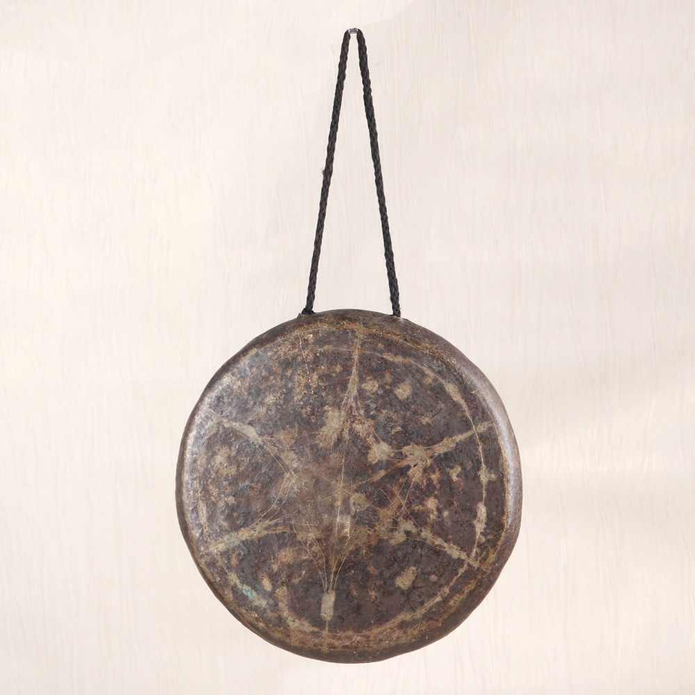In the serene solitude of the Himalayan mountains, a centuries-old tradition of crafting the most exquisite bell metal gongs continues to thrive. Introducing the Vintage Bell Metal Gong, a stunning piece that not only captivates the senses but also serves as a powerful tool to deepen your spiritual practice. Imagine the mesmerizing vibrations of this gong filling your meditation space, transporting you to a realm of profound calm and clarity. Crafted by master artisans using time-honored techniques, this gong is made from premium bell metal, ensuring a depth of sound that will linger long after each strike. Whether you're leading a group meditation, starting your day with a morning ritual, or simply seeking a moment of tranquility, the Vintage Bell Metal Gong is the perfect companion for your Tibetan prayer and spiritual awakening. Its elegant design and exceptional craftsmanship make it a stunning centerpiece in any meditation space, while its ability to enhance your practice and cultivate inner harmony makes it an invaluable tool for your journey of self-discovery. Unlock the enchanting vibrations of the Himalayan bell metal gong and embark on a transformative spiritual journey with this timeless treasure.