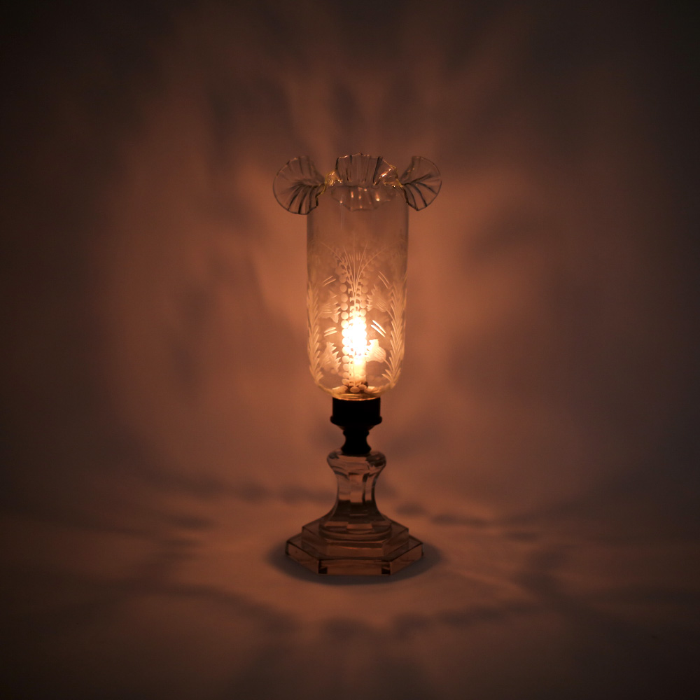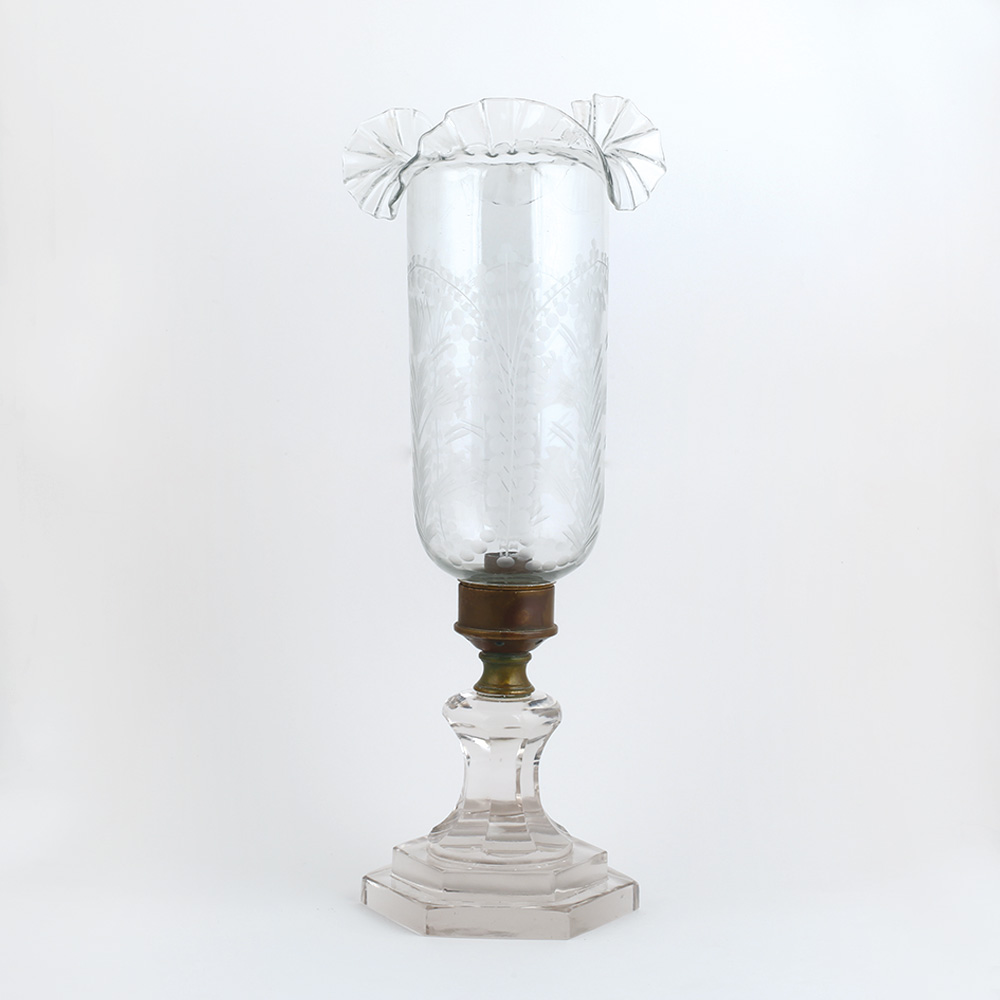 Vintage Top Curved Glass Lamp. The lamp is unique and allows a great lighting option for any room.