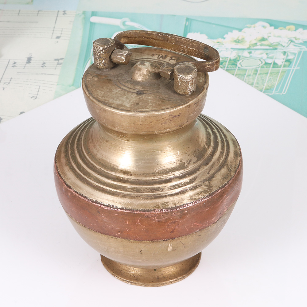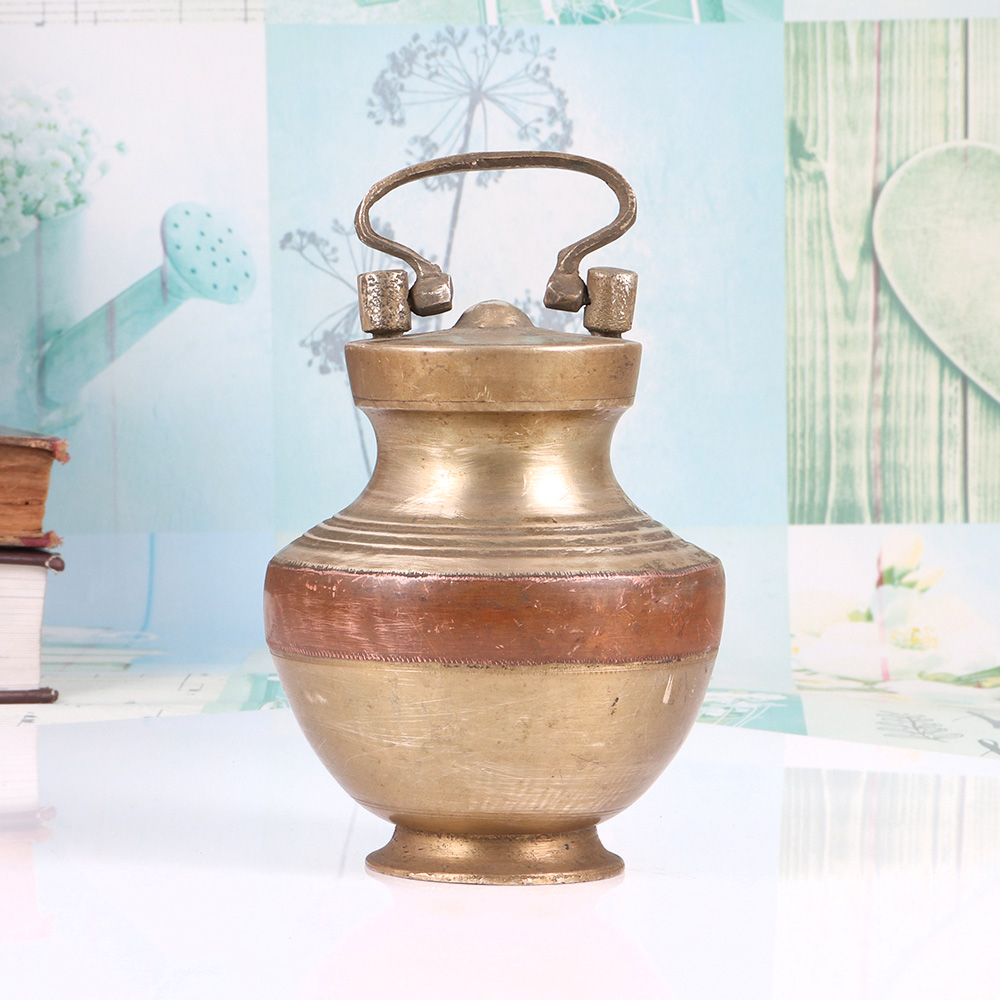 Elevate your sacred rituals and décor with this exquisite copper brass Ganga Jali pot, a stunning work of art from Northern India. This Ganga Jali pot is more than just a vessel - it's a portal to the purifying energy of the sacred Ganges River. It's a powerful symbol of the river's cleansing properties. Whether you're looking to deepen your meditation practice, create a breathtaking altar, or simply add a touch of timeless elegance to your living space, this copper brass pot is a true must-have. Its sturdy construction and classic aesthetic ensure it will be a beloved heirloom for generations. Invite the revitalizing energy of the Ganges into your life with this stunning, functional piece.