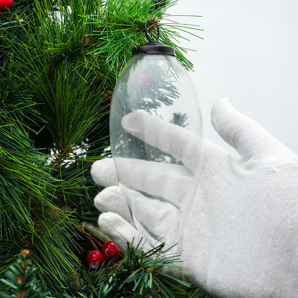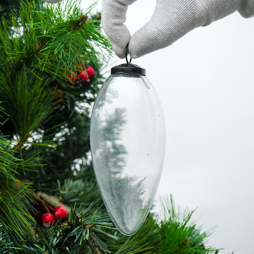Vintage Transparent Hanging Ornament For Tree decor. Crafted from high-quality glass with a smooth glossy finish, this decorative bauble adds a classic and festive touch to Christmas trees, wreaths, and holiday displays.