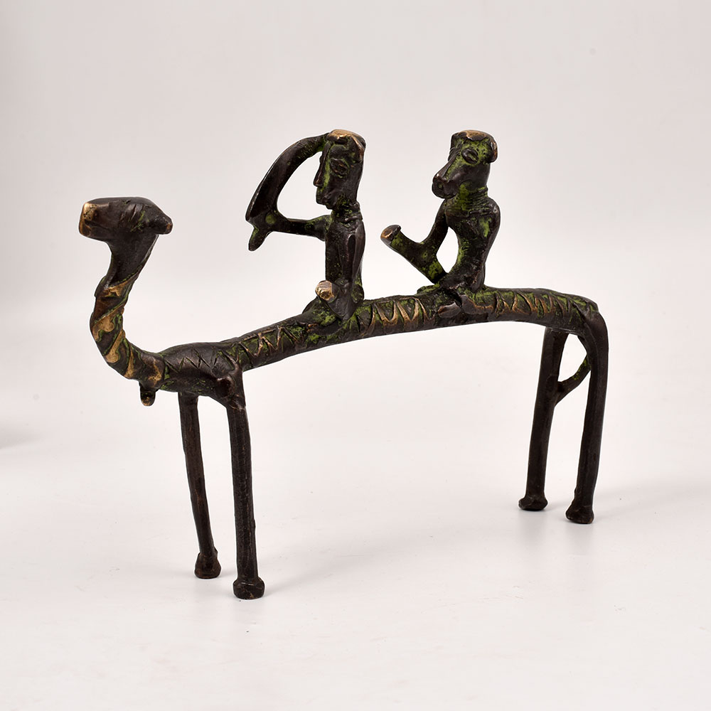 - Features two tribal riders atop the camel, capturing the spirit of ancient cultures