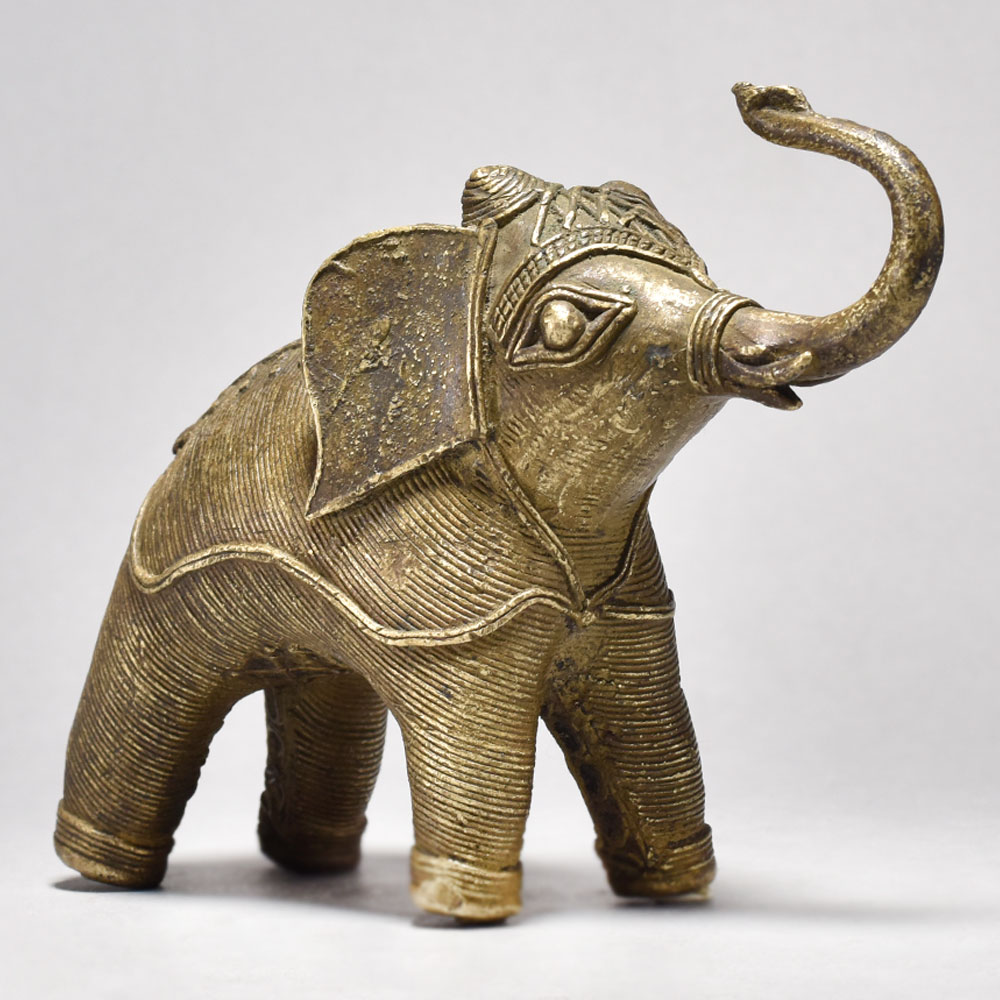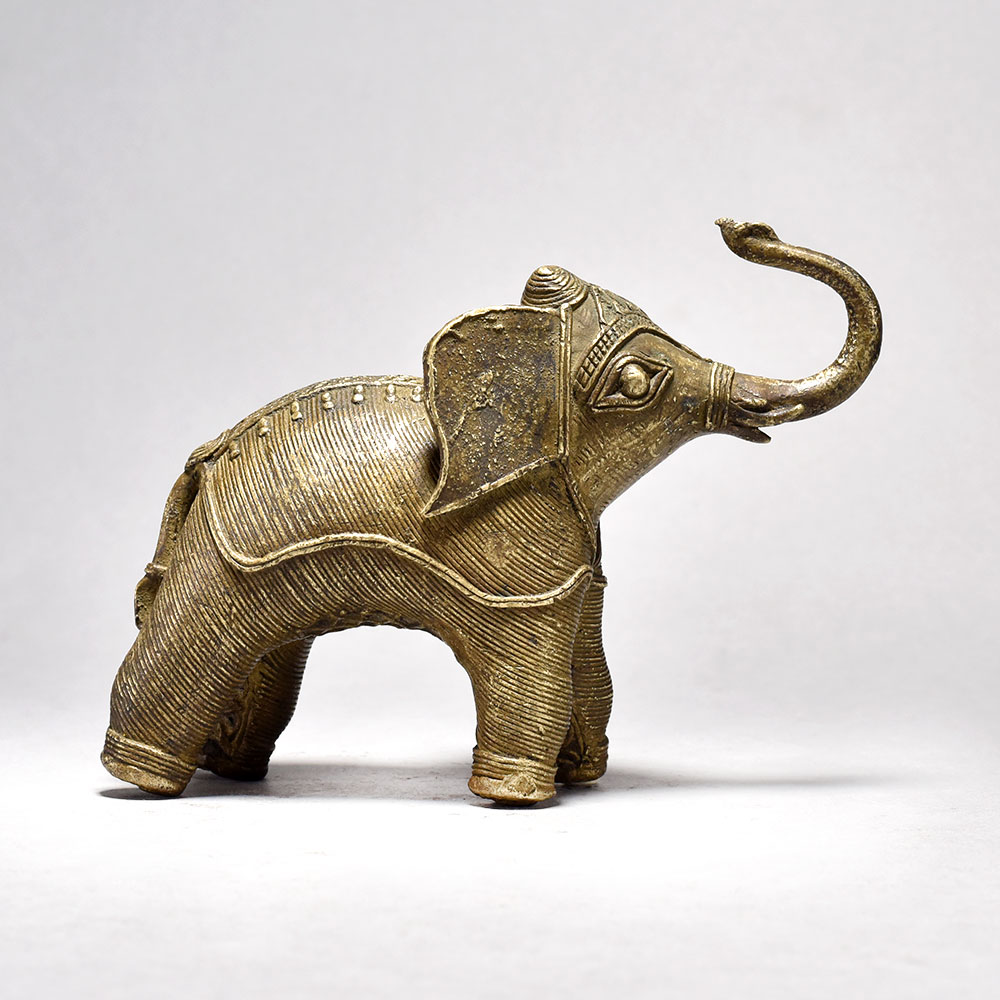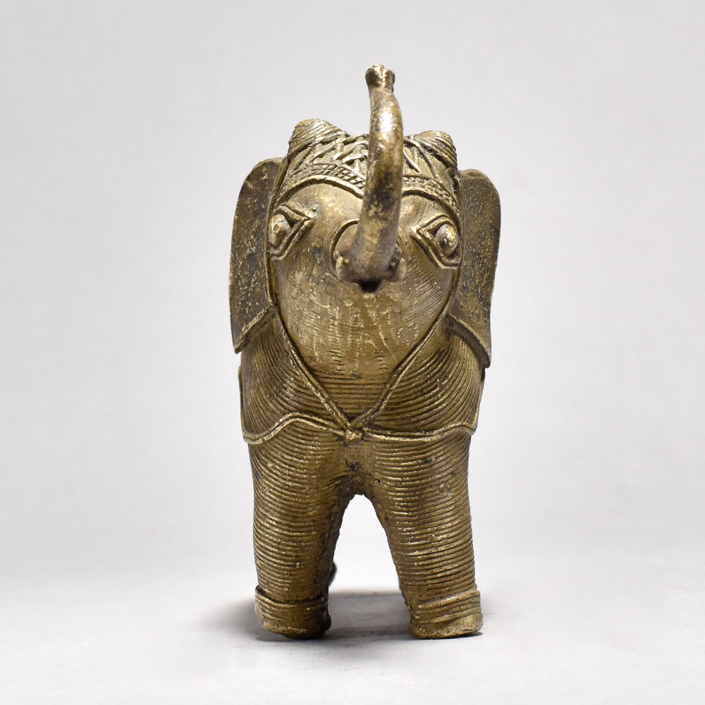 Elevate your home decor with the regal presence of this Vintage Tribal Elephant Figurine.This magnificent elephant sculpture is more than just a decorative accent - it's a stunning piece that celebrates the rich cultural heritage of Orissa, India. Meticulously handcrafted, each intricate detail of the vintage tribal design reflects the artistry and skill of the region's talented artisans. Display this captivating figurine to infuse your home with the strength, wisdom, and grace of the elephant. Whether you're a collector of unique global art or simply seeking to elevate your decor, this vintage tribal elephant is a must-have addition. Crafted from high-quality, durable brass Vintage tribal design, a one-of-a-kind work of Orissa art Trunk raised in a symbol of good luck and prosperity Adds an exotic, worldly touch to any space This unique handcrafted piece is a testament to traditional artistry, blending functionality with beauty and making it a treasured collectible for years to come.